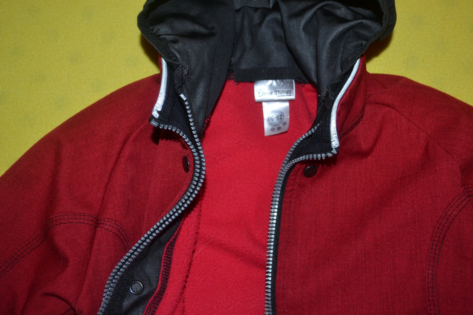 perfektní luxusní značková podzimní/zimní bunda s vnitřní mikinou v.86/92,v dvojité bundě uvnitř fleece,pokud se používá zvlášť bunda-funkční vnitřek+ skvělá samostatná mikina,výborný střih,krásně sedí,měkká,příjemná ,délka 38,rukáv od krku 36cm,kapsy,kapuca,super výrobek