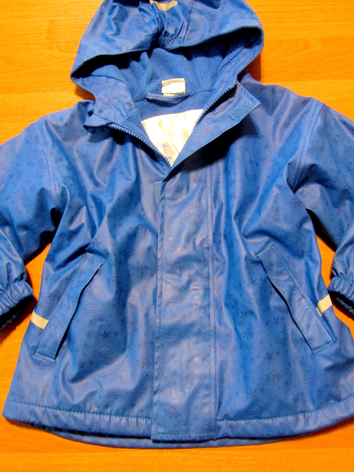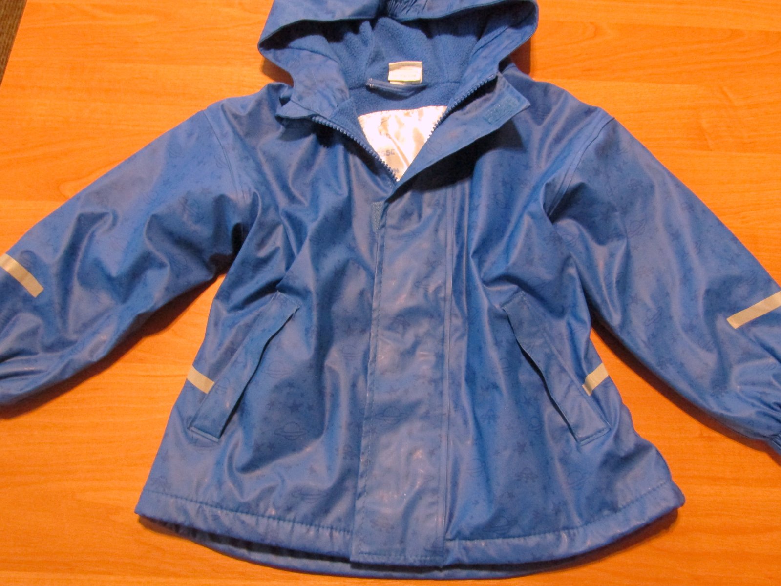 nošená, stále velmi pěkná, bez známek nošení má reflexní prvky, hezkou jasnou modrou barvu není podšitá uved. vel. 104, ale myslím, že vydrží déle