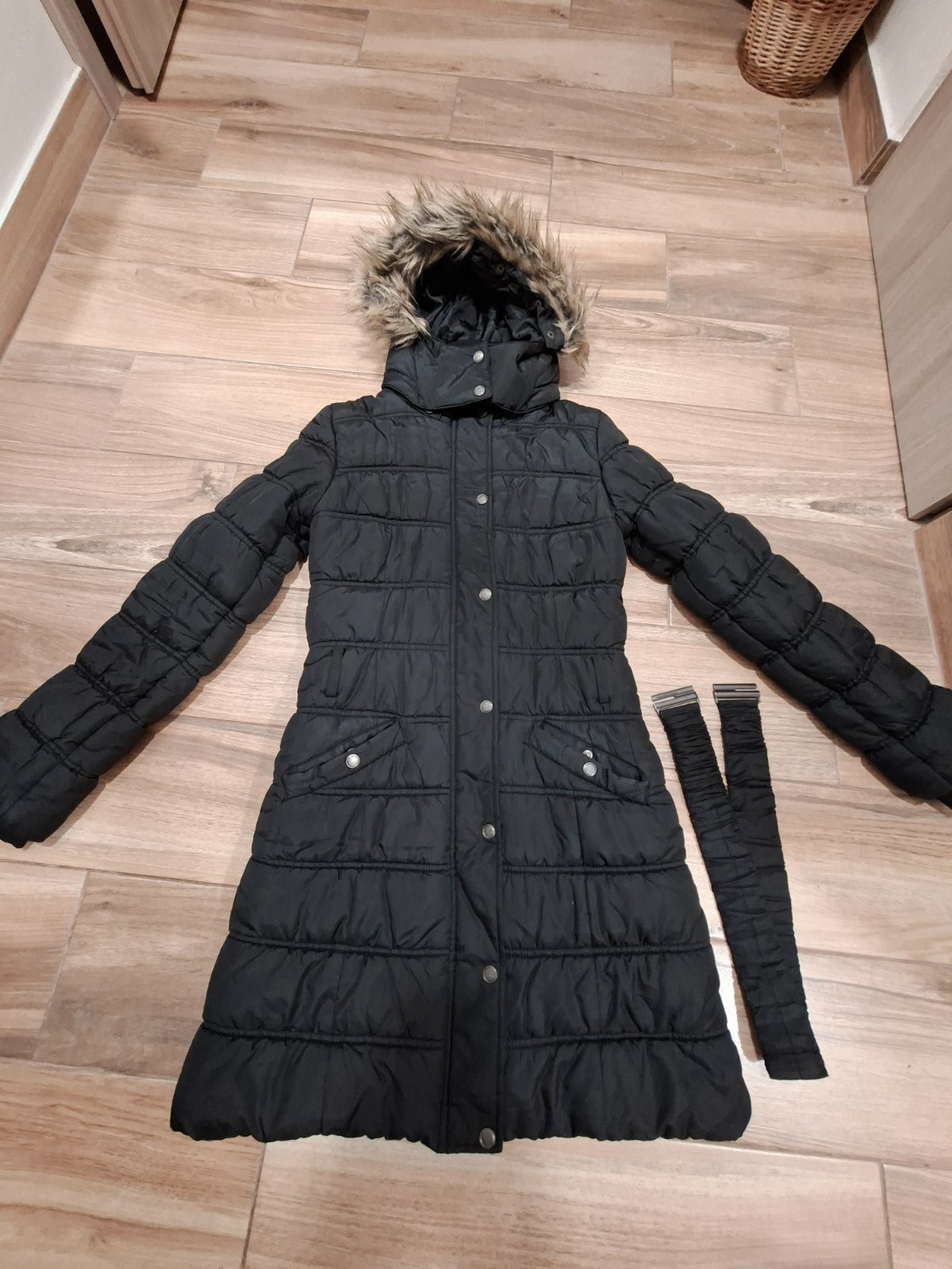 Zimní kabát, kožíšek odepinaci, výplň v pořádku, lze nosit bez pásku. Bez vad.