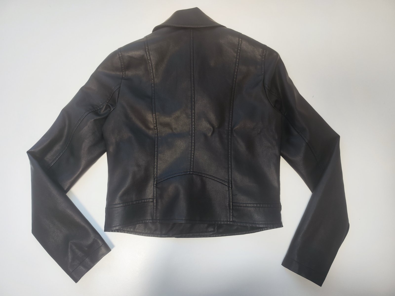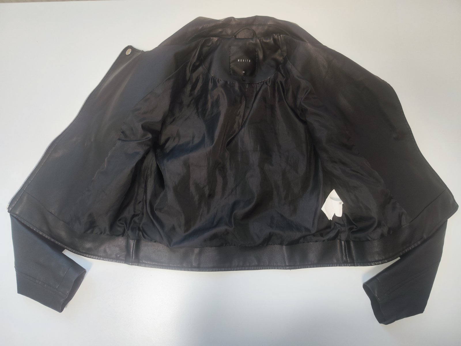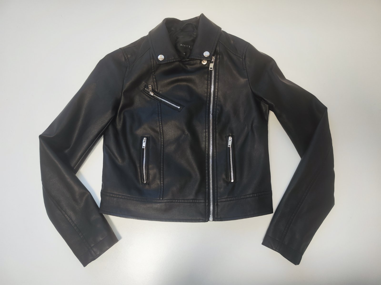 Prodám černou koženkovou bundu Mohito, velikost 32, rozměry – délka zad 45 cm; šířka v podpaží 42, 5 cm; délka samotného rukávu 59 cm (měřeno nahoře); délka rukávu od krku 69, 5 cm. Má 2 kapsy se zapínáním na zip, třetí kapsa nahoře je falešná. Doplní skvěle jak obyčejné džíny a tenisky, tak i sukni nebo šaty. Vrchní materiál je 100% polyuretan, podšívka 100% polyester. Dá se prát naruby na jemný program bez ždímání, sušit volně na ramínku. Cena 300 Kč, v Brně možné osobní předání.