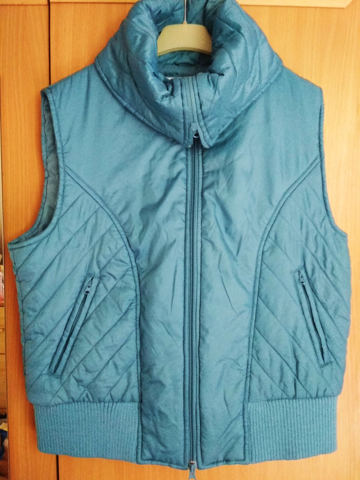 Prodám dámskou vestu, barva světle modrá, velikost 40. Materiál 100% polyester. Propínací - dvoucestný zip. Na předních díle kapsy na zip. Oblečená jen párkrát, cena 270,-- Kč.