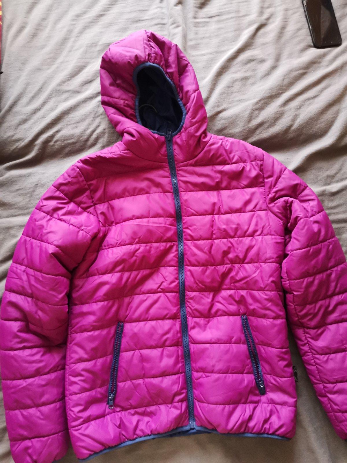 Bundu jsem měla párkrát na sobě, stále je v krásném stavu, bez chybičky, jen má nepatrné oděrky na sponě. V límci je schovaná kapucka. Pásek je gumový a jde jej příp. vyndat. Velikost je uvedena L,...