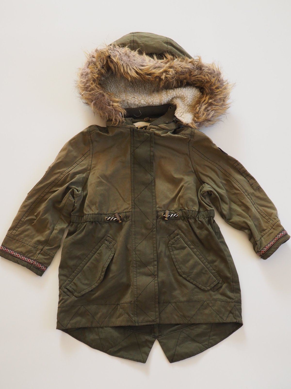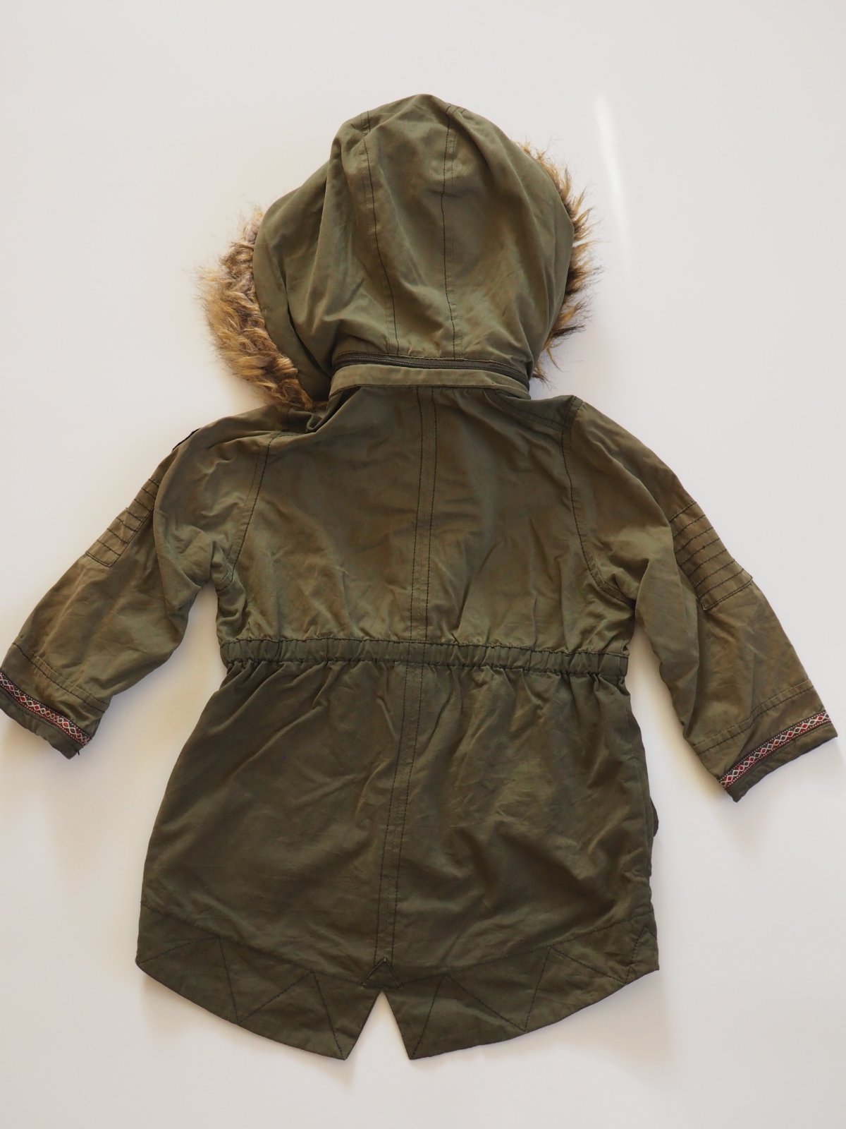 Lehká parka bez podšívky, kapuci lze odepnout.