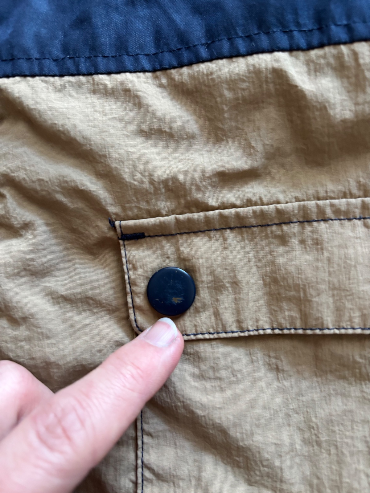 DOBRÝ STAV - žmolíky na lemech, spíš na donošení, na doma, výrznější žmolík....u takovéto stavu oblečeni je vždy zohlednění v ceně .