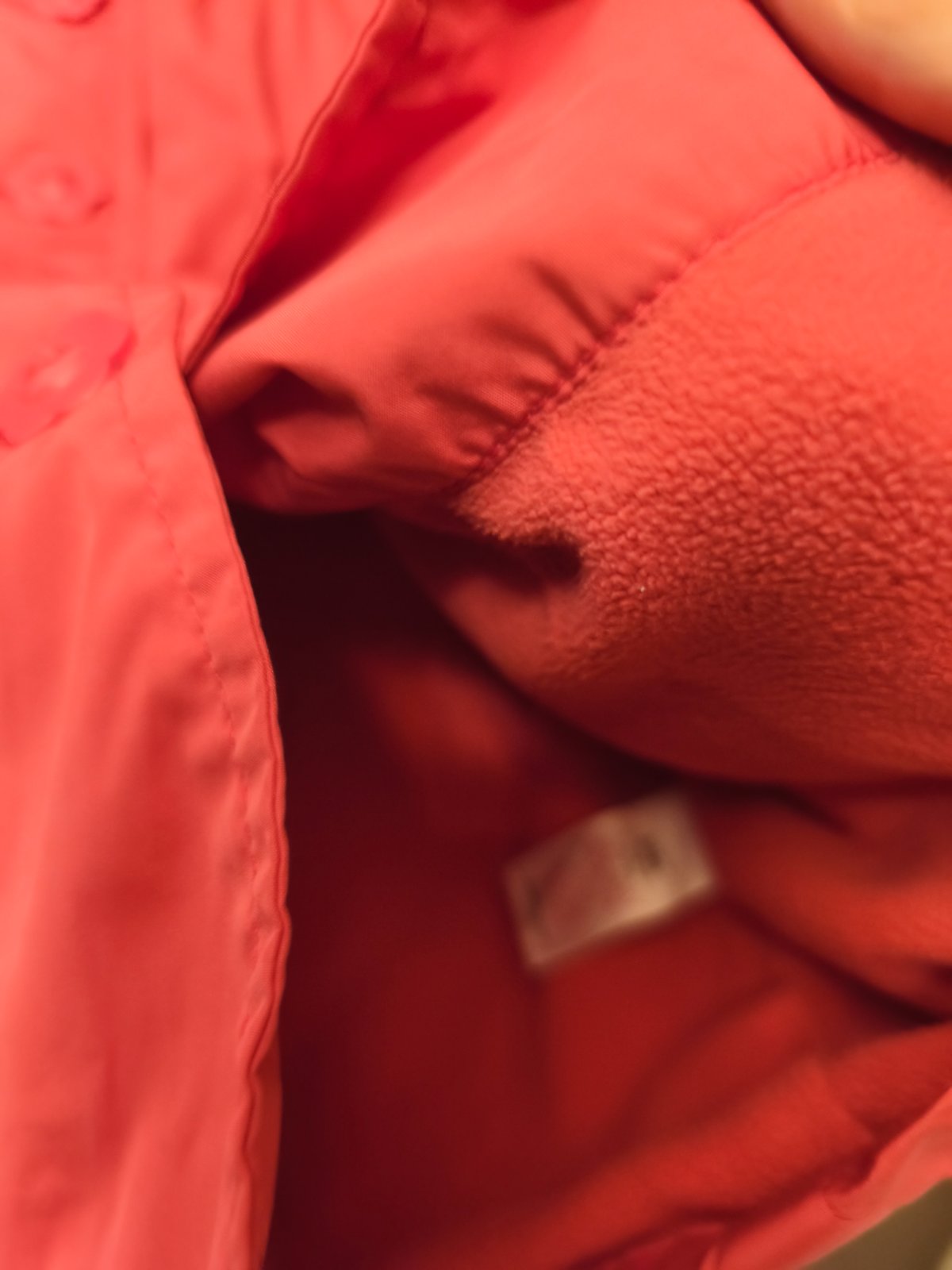 Přechodový kabátek podšitý fleesem, knoflíky ve tvaru kytičky. Běžné známky praní. Vel 5 let