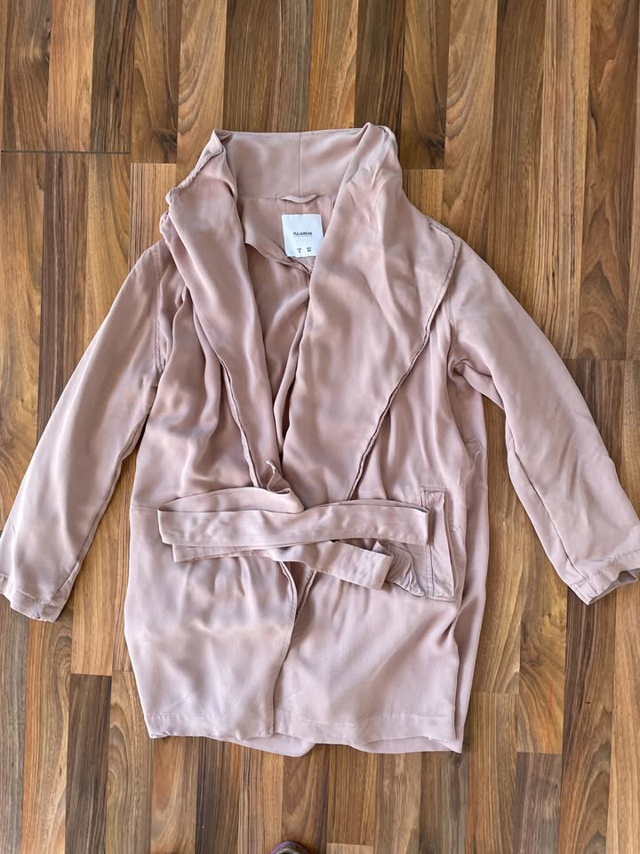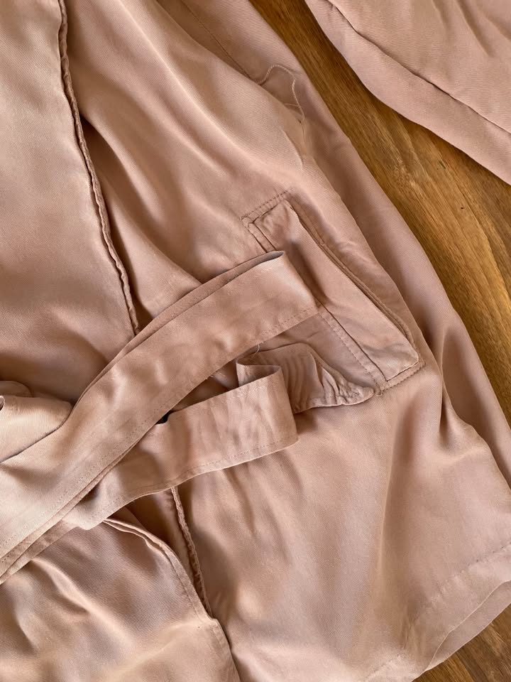 1060. nabízím k prodeji tento béžový lehký kabátek/kardigan, vel S (ale myslím klidně i M a více), Pull Bear. Barva světle hnědá/béžová - teplý odstín, taková tmavá pudrová. Materiál není zateplen, je to takový látkový přehoz bez zapínání, jen ke stažení páskem. Nošen, bez vad jen materiál je náchylný na mačkání a uložením je aktuálně plášť pomačkán, krásný