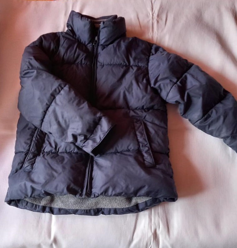 Velmi teplá, prošívaná, navíc uvnitř zateplená flecce podšívkou, ve velmi dobrém stavu, jen chybí kapuce, stojáček zateplený úpletem, 2 boční kapsy+vnitřní náprsní kapsa, zapínání na uzávěr.