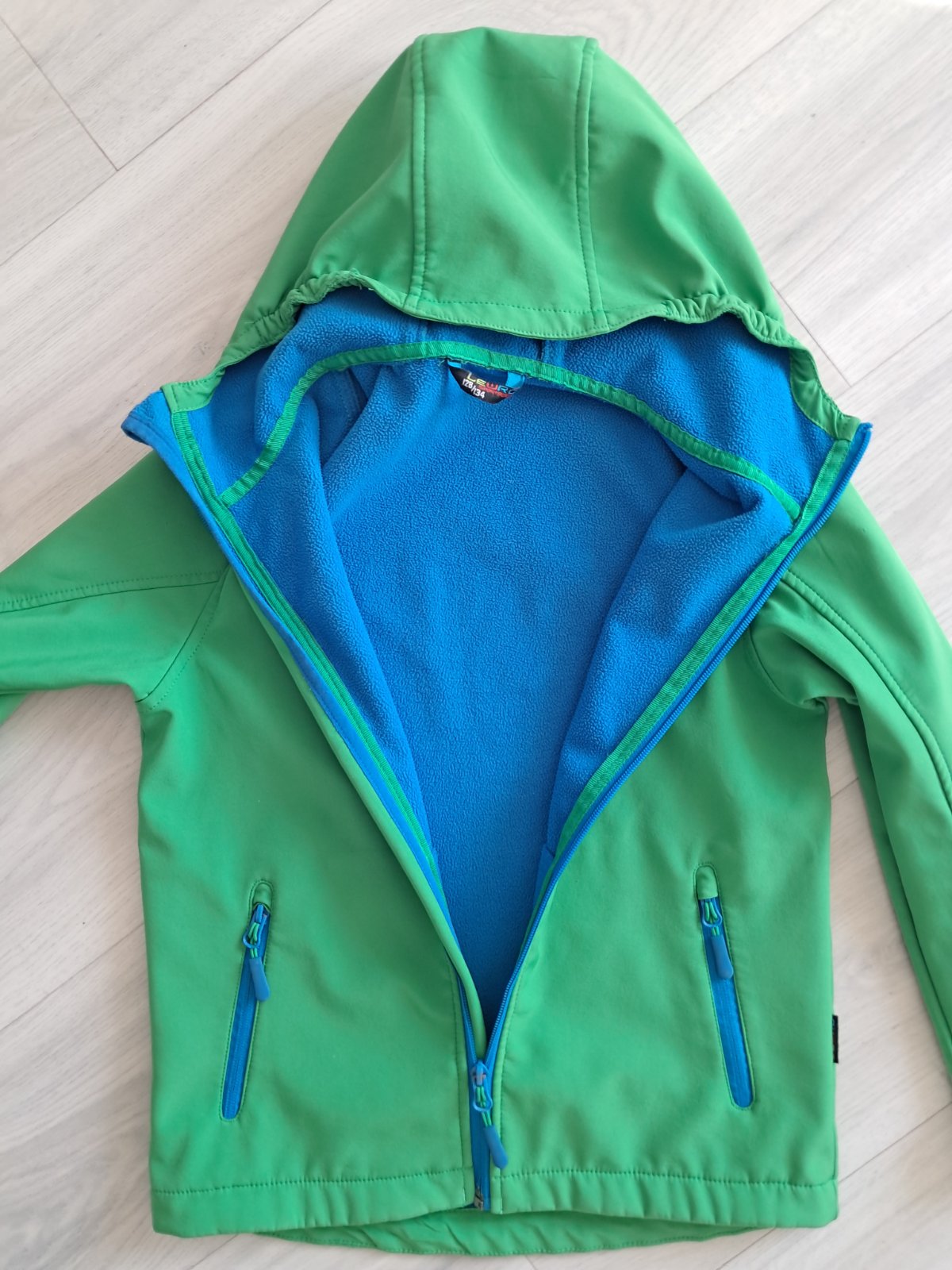Chlapecká softshellová bunda, uvnitř s flisem, tak že teplá, ideálně na podzim a chladnější jaro, velikostu uvedená 128-134. Stále moc pěkná a bez vady. Šířka 43 cm, délka 53 cm.
