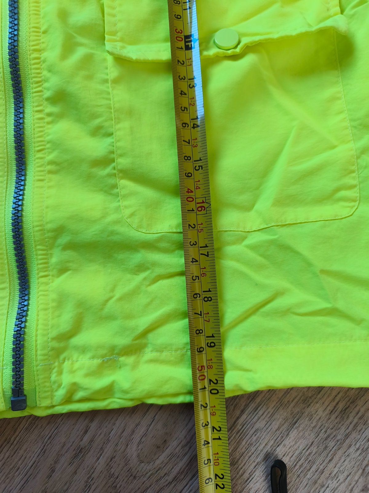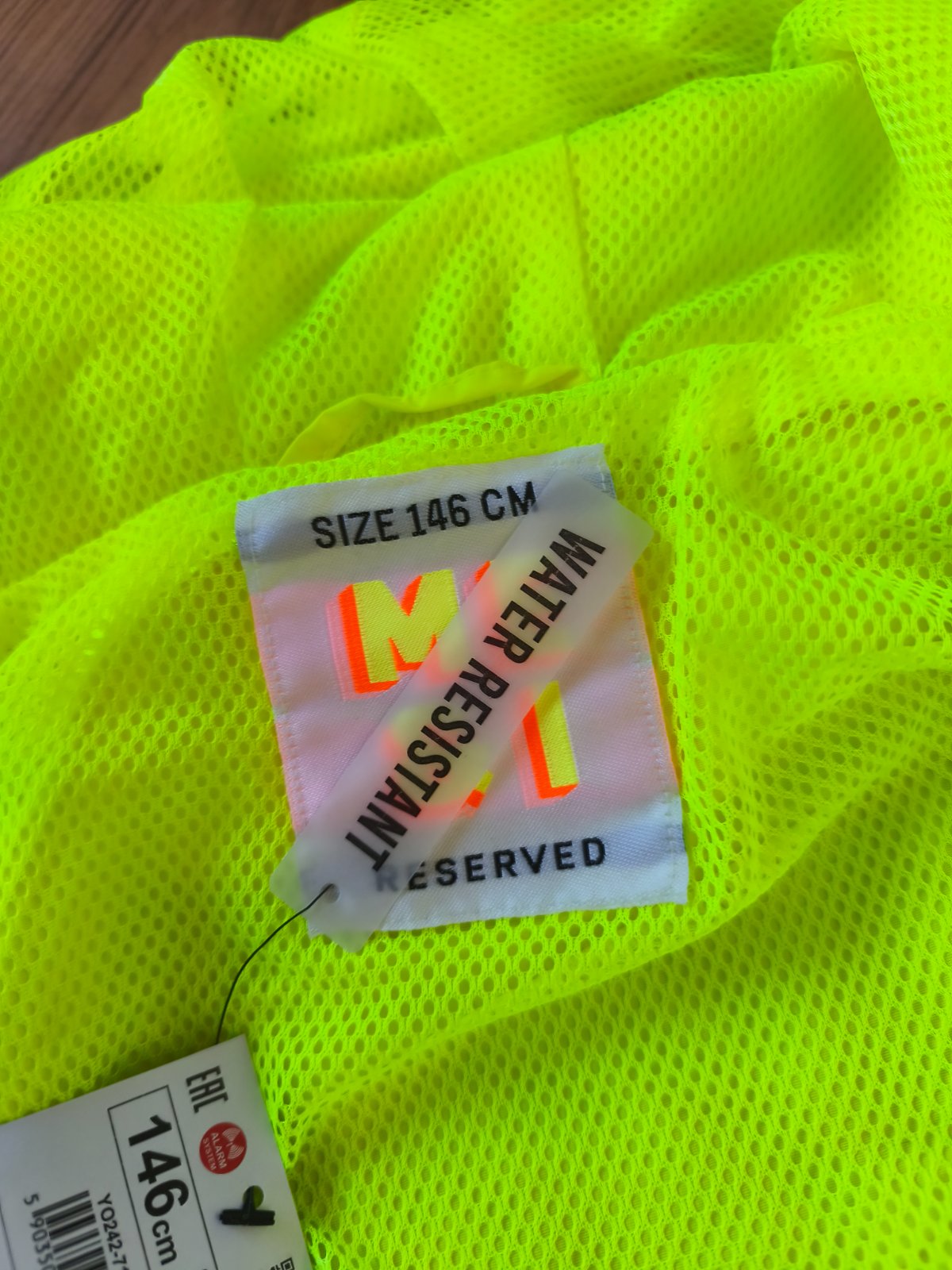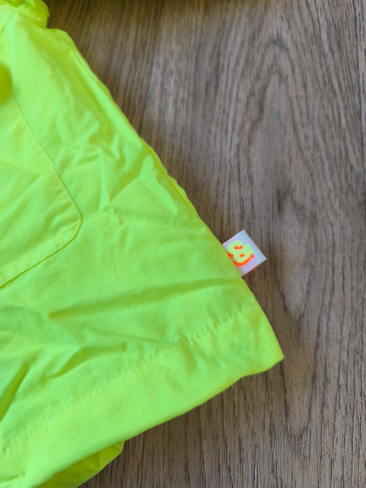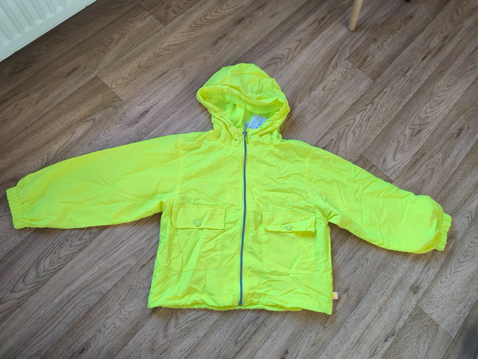 Neon šusťáková bunda vel 146, oversize, sedí i XS/S s 3/4 rukávem. Nenošená, jen na několika místech zašpiněná od manipulace na burze.