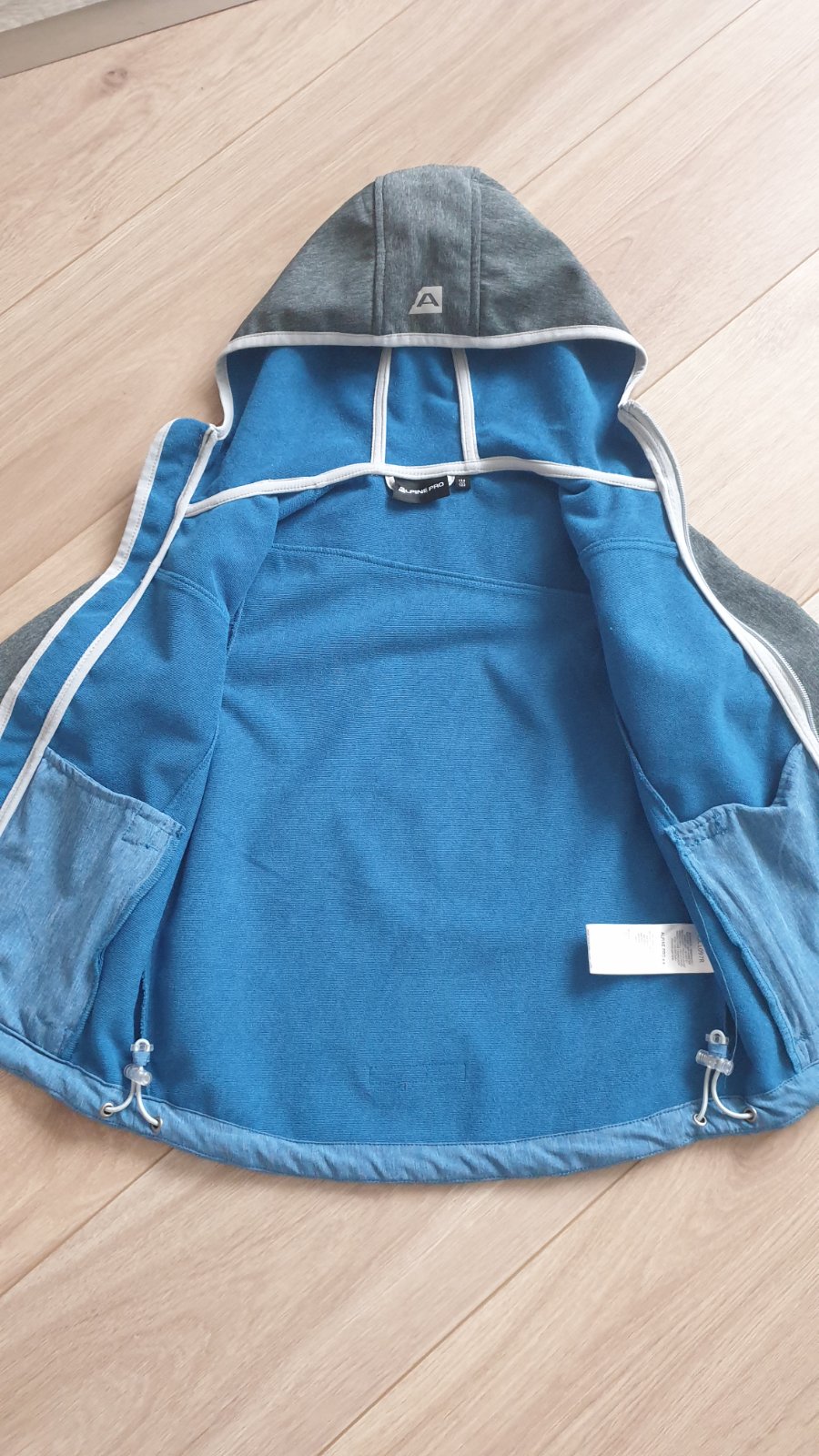 Dovoz Anglie, ve velmi dobrém stavu, u pravé kapsy zatržena jedna nitka viz. foto, jinak bez vad, v perfektním stavu, podšívka síťka, jemný šusťák, tmavší šedá barva v kombinaci s tyrkysově modrou,...
