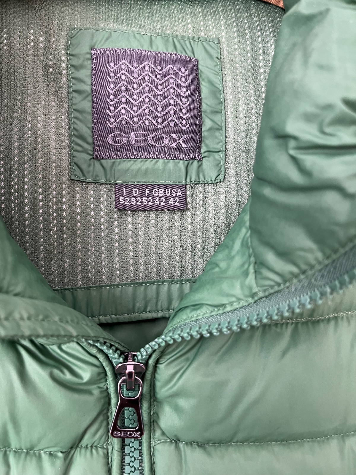 Je nošená, ale stále moc pěkná, jen peří už není úplně rovnoměrně. Kvalita od Geox.