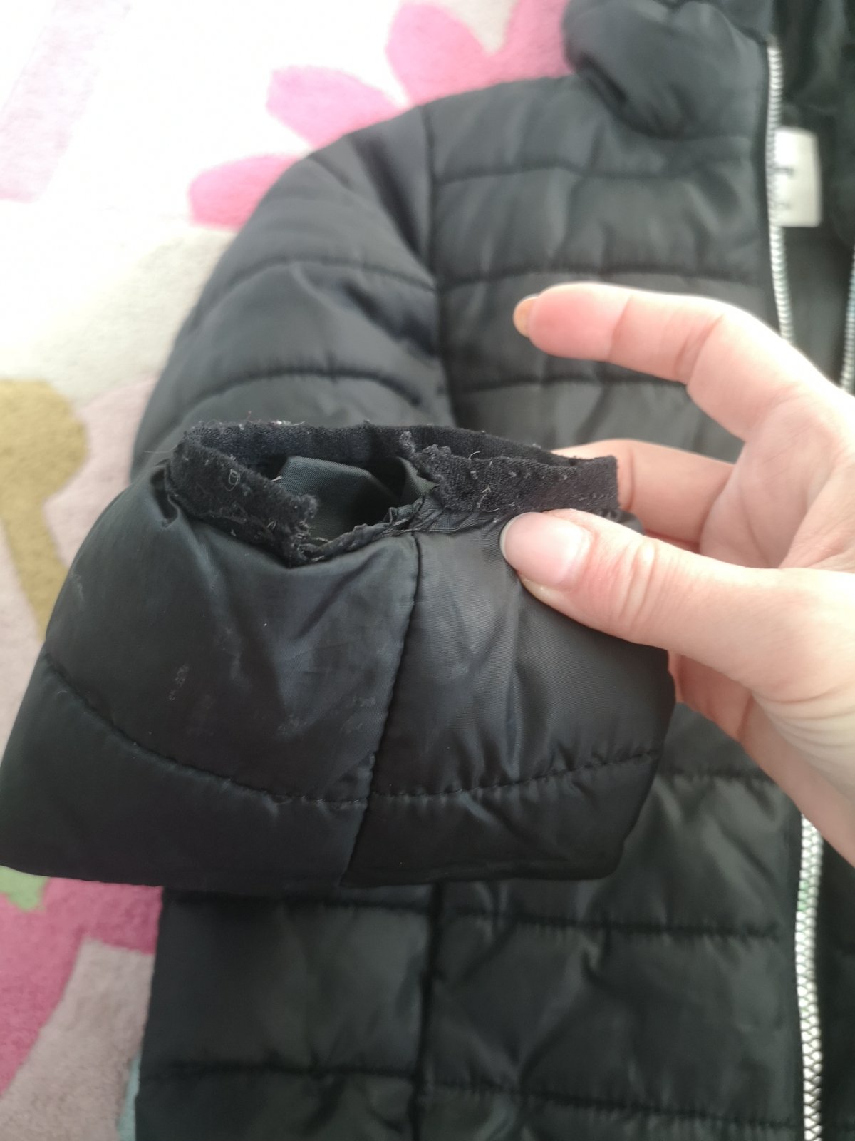 Kupovanav v Sinsay. Vypln bundy, zip porad super. Jen jeden lem rukavu je natrzenej viz. foto. Urcite jeste poslouzi.