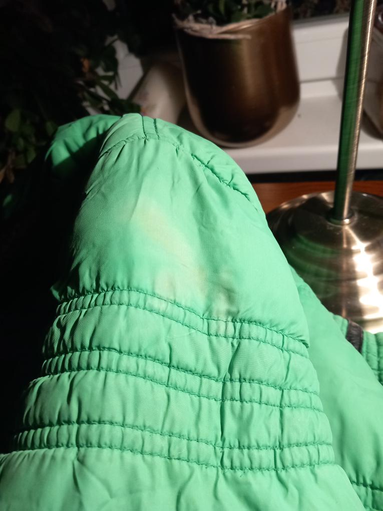 Teplá, prošívaná, navíc uvnitř, v horní části zateplená flecce podšívkou, "nextovsky propracovaná", v dobrém stavu, jen několik menších vad - světlý flek na rukávu a částečně rozpárané prošívání (viz foto), celkem 3 kapsy, zapínání na uzávěr a suchý zip, zateplená kapuce napevno.