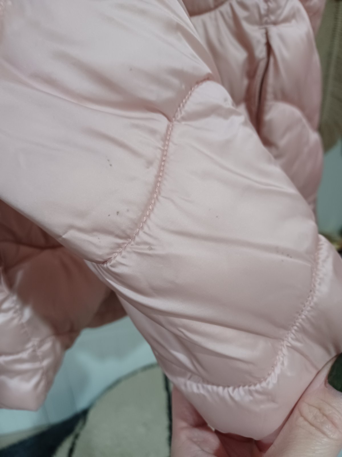 Přechodová bunda Reserved 164, nošená při XS, prala jsem jí maximálně 2krát. Na rukávu pidiflíčky, nejdou odstranit. Hezká světle jemně růžová lesklá barvička.