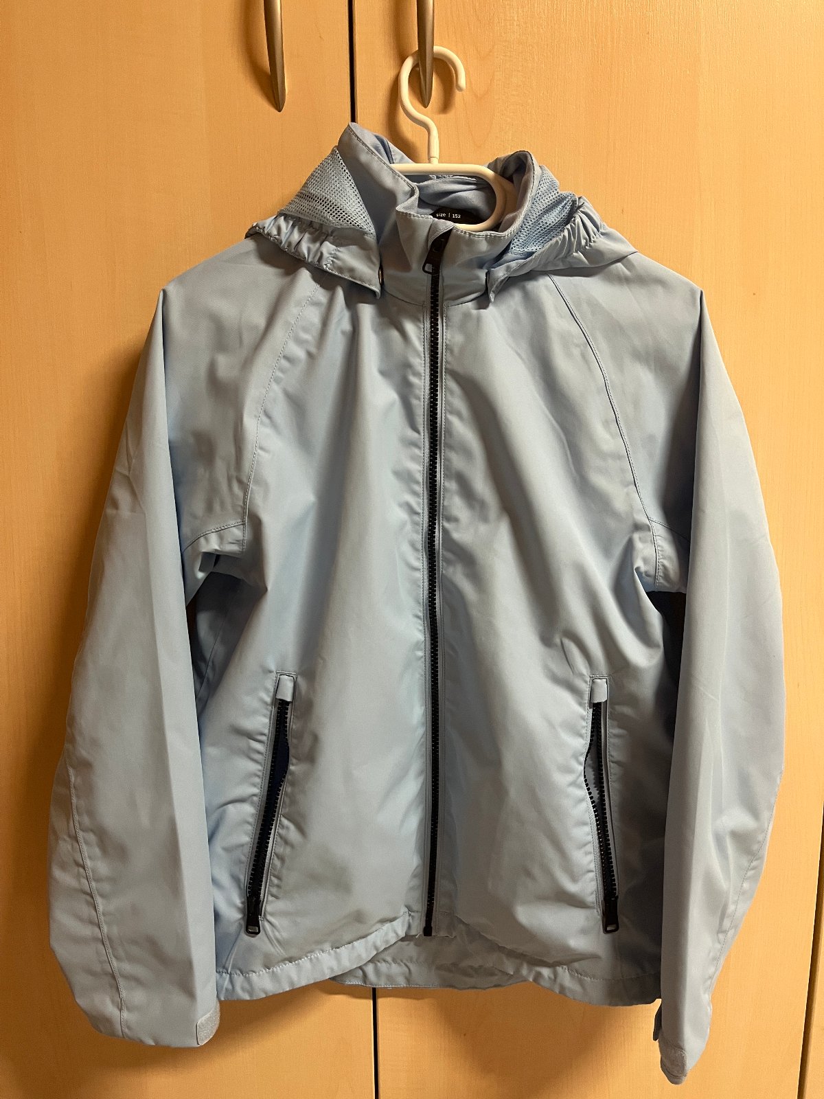 Voděodolná, větruodolná bunda, materiál odpuzuje nečistoty. Uvnitř je síťovina. Dcera tento typ bundy nosí stále dokola, jen měníme barvu. Bunda je ve velmi pěkném stavu, skoro nenošená, bohužel dcera rychle vyrostla.