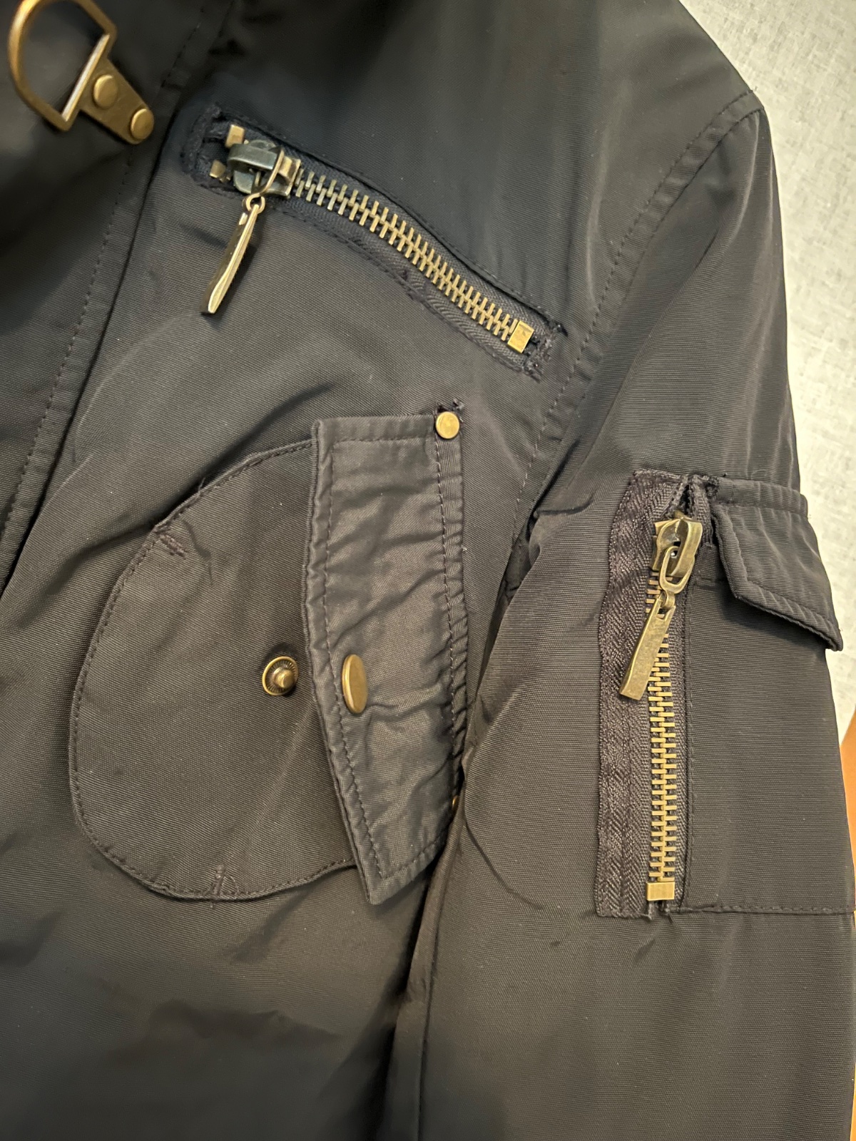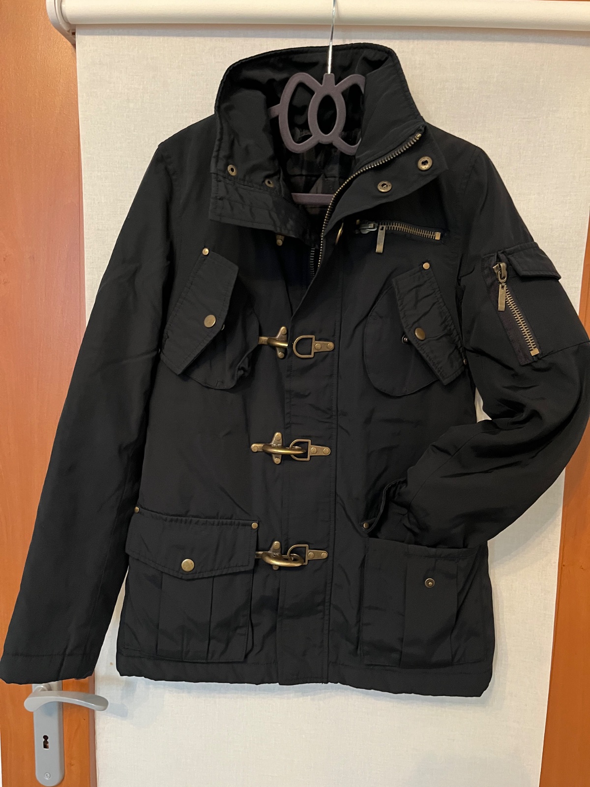 Krásně propracovaná přechodová buda ze Zary, spoustu zipů a kapes, originální zapínání a detaily. Párkrát nošená, bez kapuce a pásku.