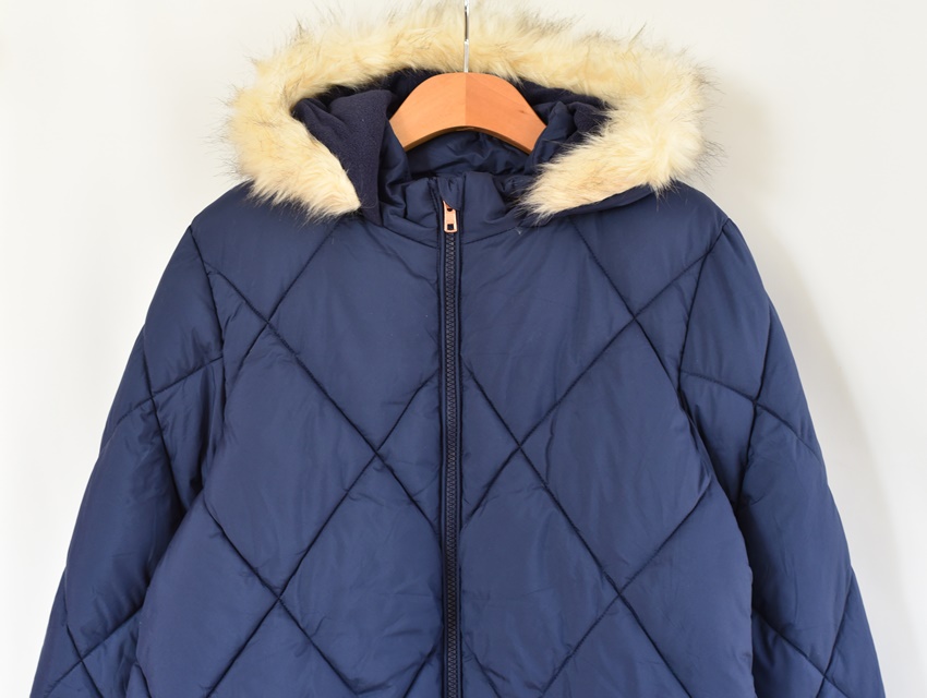 Tm. modrá zimní bunda. Velmi teplá. V rukávech náplety, kapuce nejde sundat. Podšitá tělo flees, rukávy podšívka.