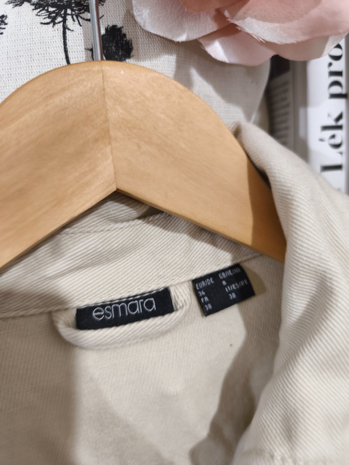 Krásný přechodový béžový či krémový kabátek s páskem vel 36, sedí S/M. Nenošený, jen uskladněný, má ještě kousek od visačky.