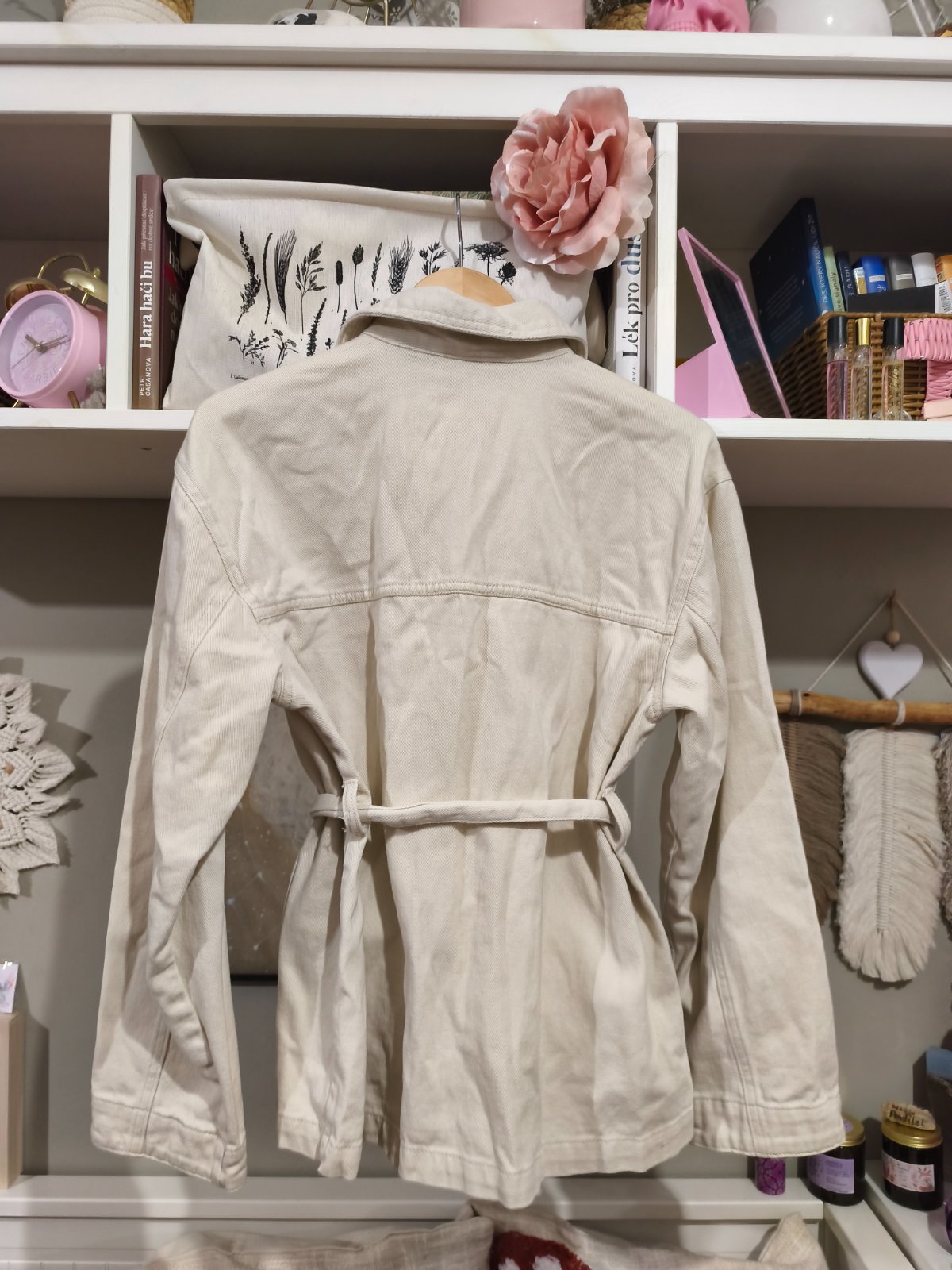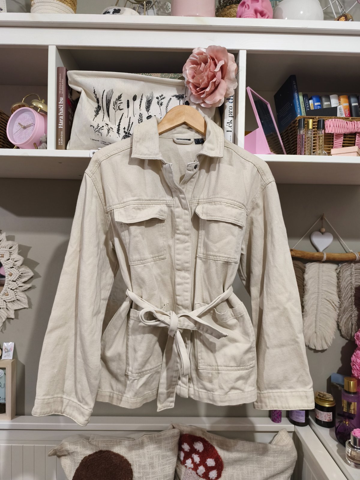 Krémový jarní kabátek s páskem S/M