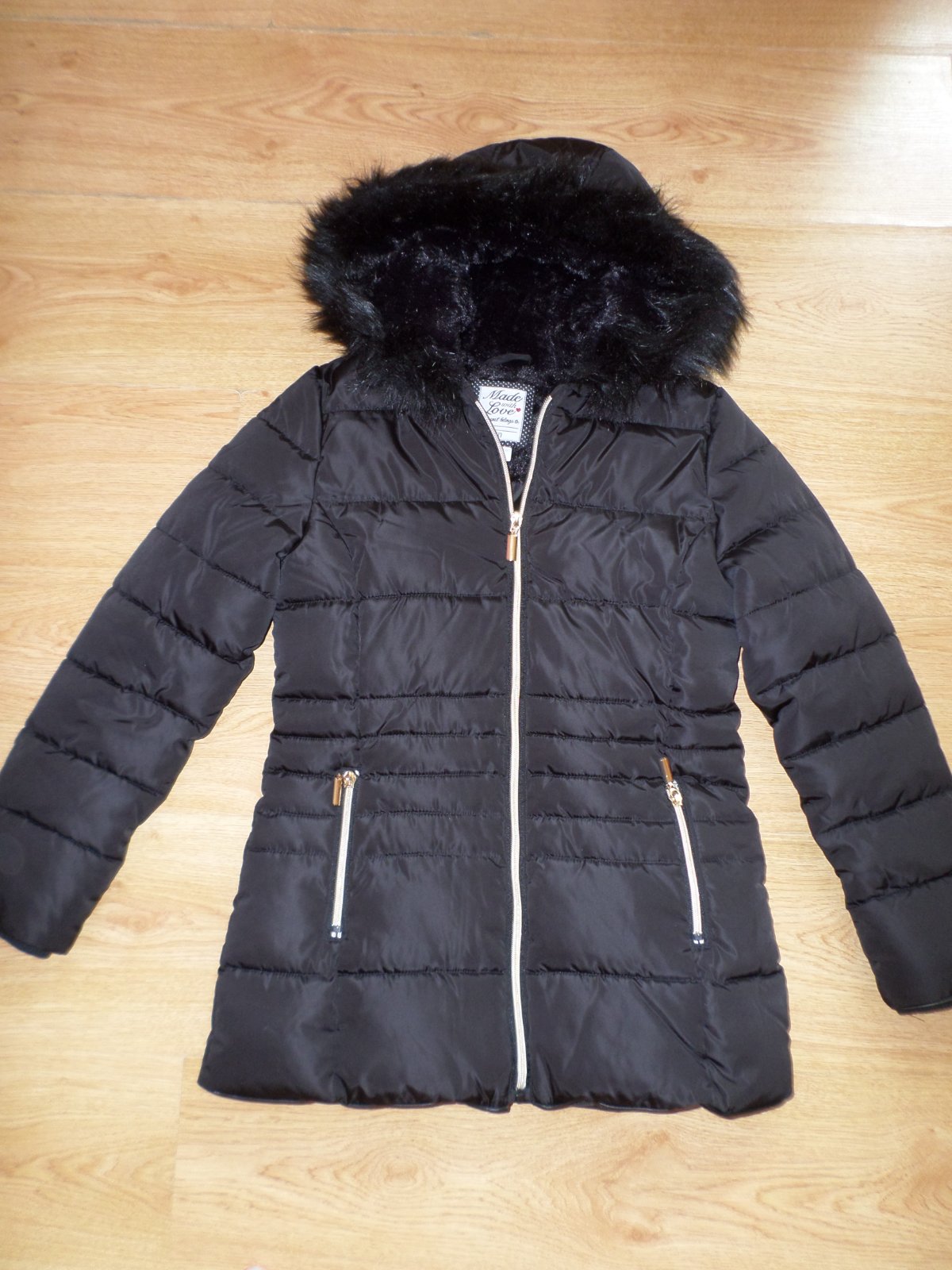 Černá zimní bunda se zlatými zipy. Nošena min.