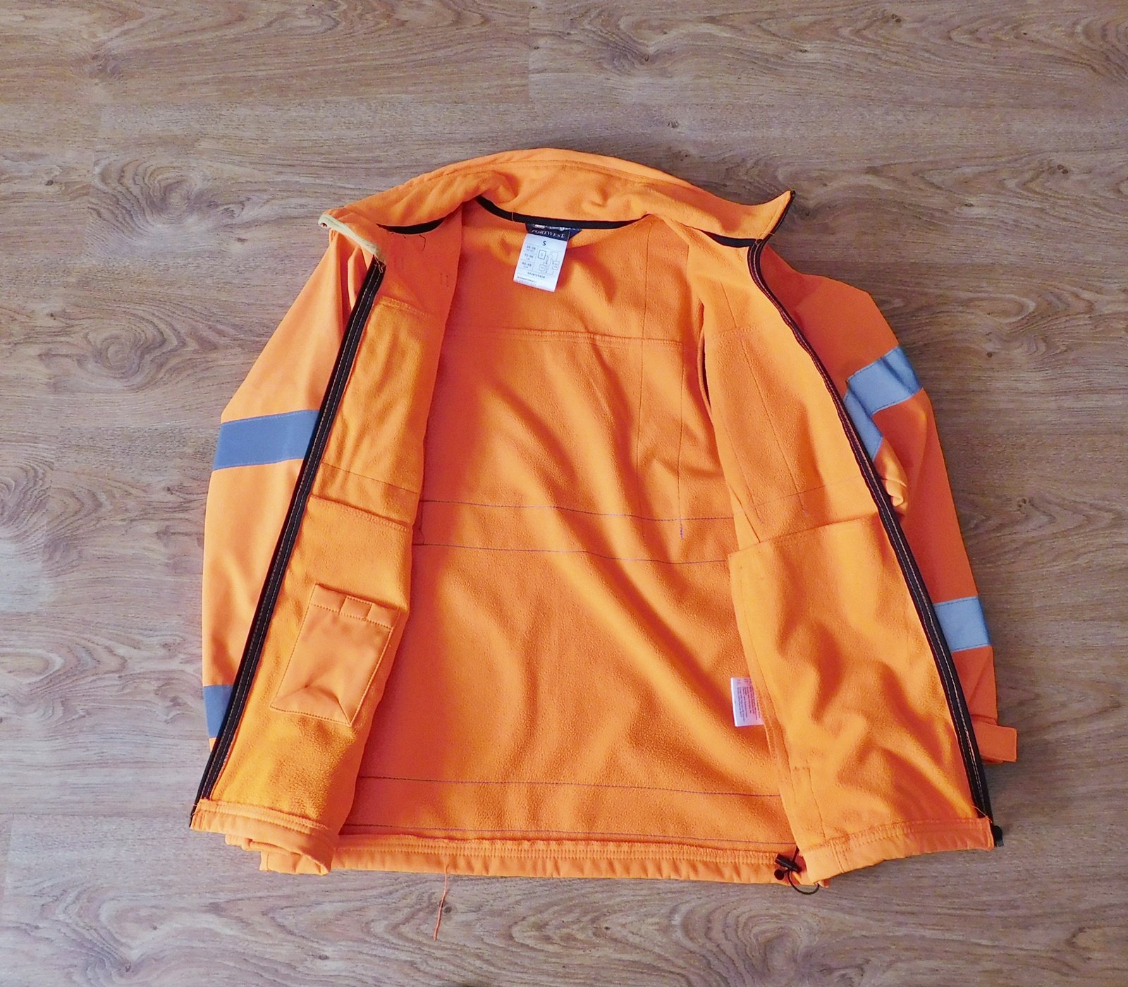 Multifunkční reflexní bunda ze softshellu,díky odnímatelným rukávům lze vytvořit vestu,nastavitelné manžety na suchý zip,odolnost vůči vodě, vysoká prodyšnost,voděodolné zipy,vnitřní podšívka je z mikro polar fleece, která udržuje teplotu,d.70cm,š.2x53cm,ruk.od krku 77cm.Minimálně nošená