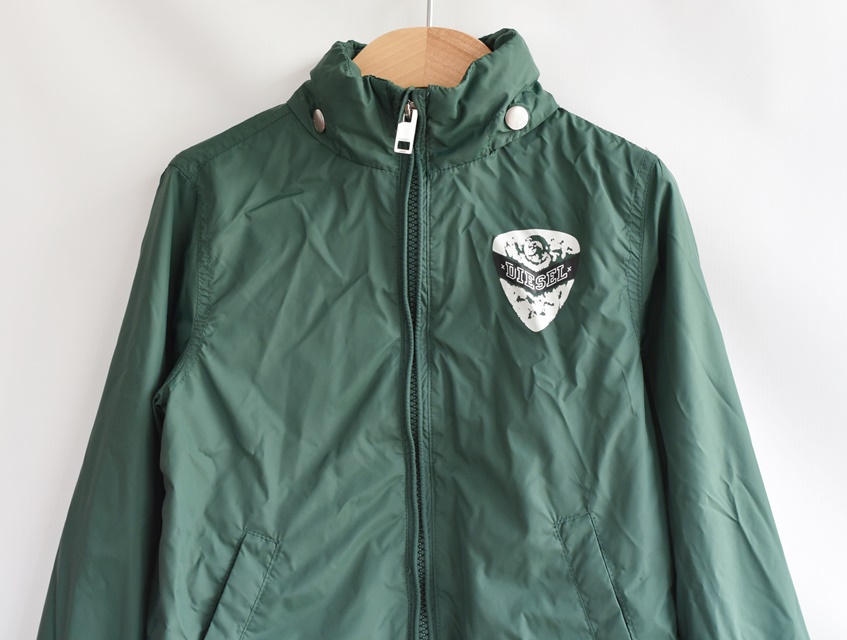 Zelená přechodová bunda. Podšitá bavlnou, kapuce v límci.