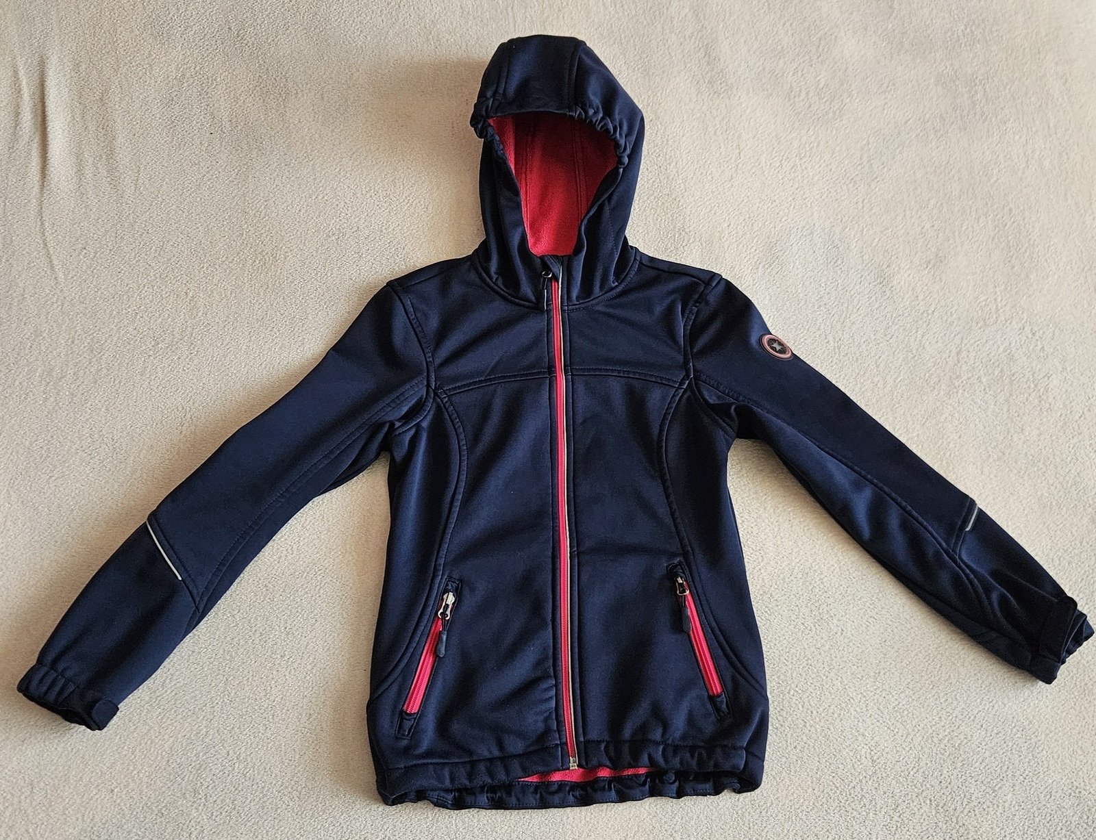 Stav naprosto bezvadný, nošena málo, měli jsme hodně na střídání, podšitá, teplá, dvě funkční kapsy na zip, reflexní prvky.