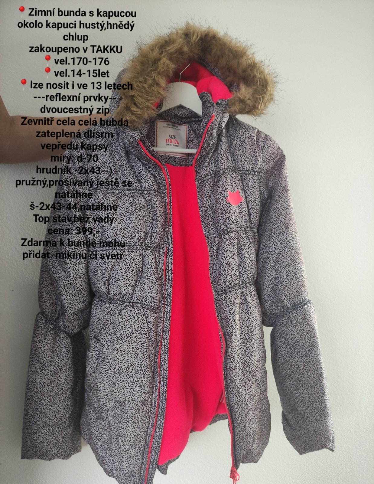Zimní bunda,vel 170,14-15-16-17lez+zdarma zimní bo