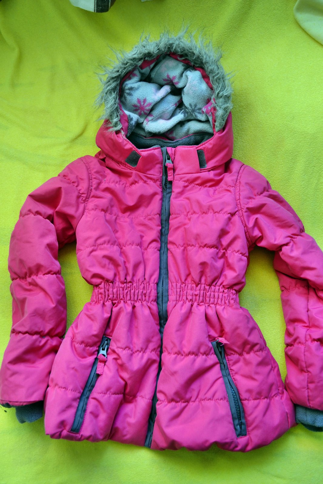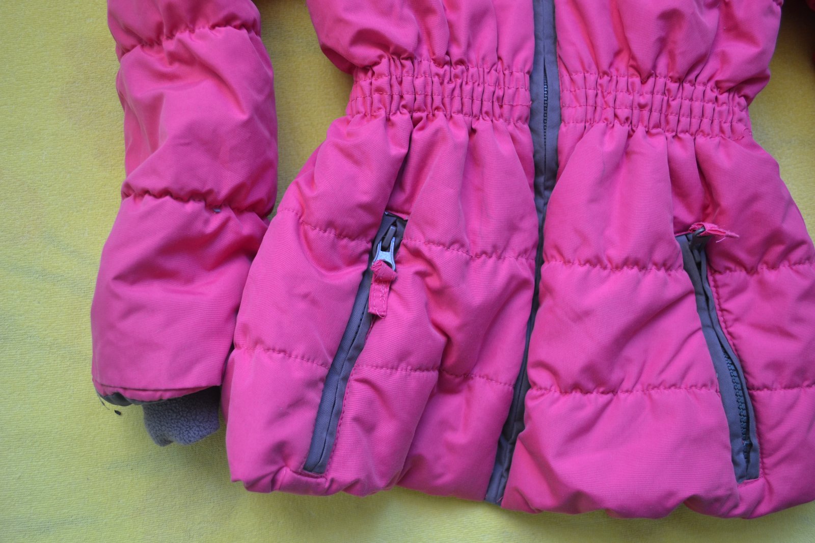 vkusná kvalitní moderní dívčí zimní bunda,v.116,nošená,kapuca,kapsy,v trupu měkké fleece,rukávy ukončené fleece,uvnitř protisněžný pás,délka 50,rukáv od krku 51cm,měkká , příjemná