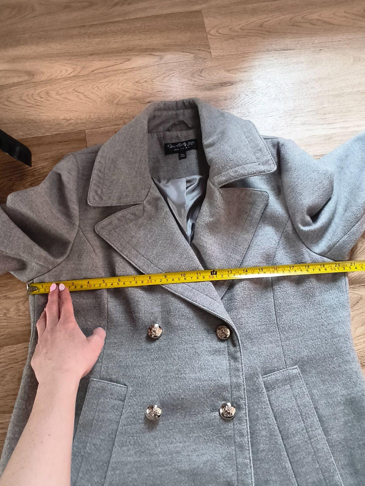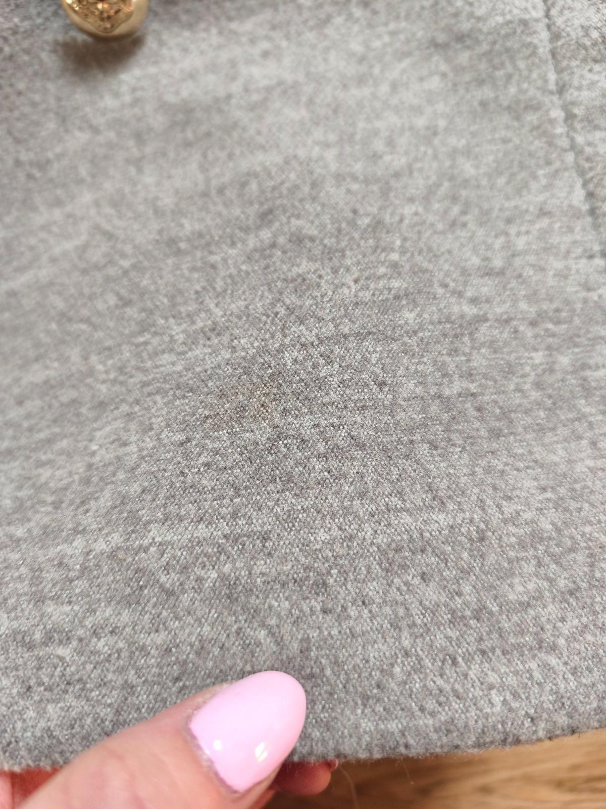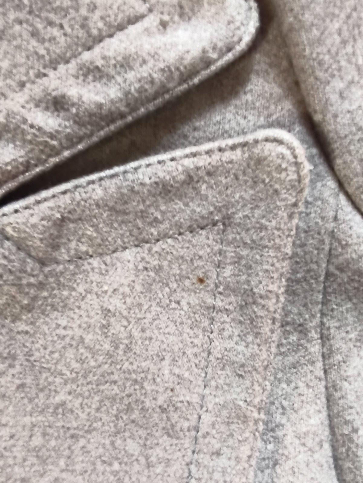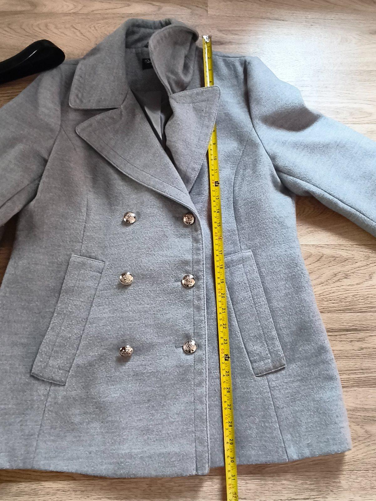 Krásný přechodový kabátek s ozdobnými knoflíky, nošený při L/XL, měřte. 2 flíčky, zkusím ještě vyprat.