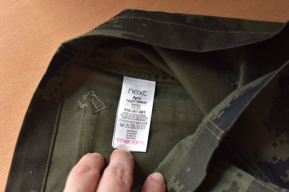 VELMI DOBRÝ STAV – oblečení nese známky nošení a praní, jako patrnější chloupek, mírně opraná barva, žmolík jen na lemech,