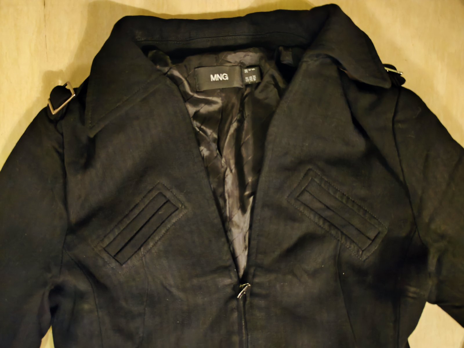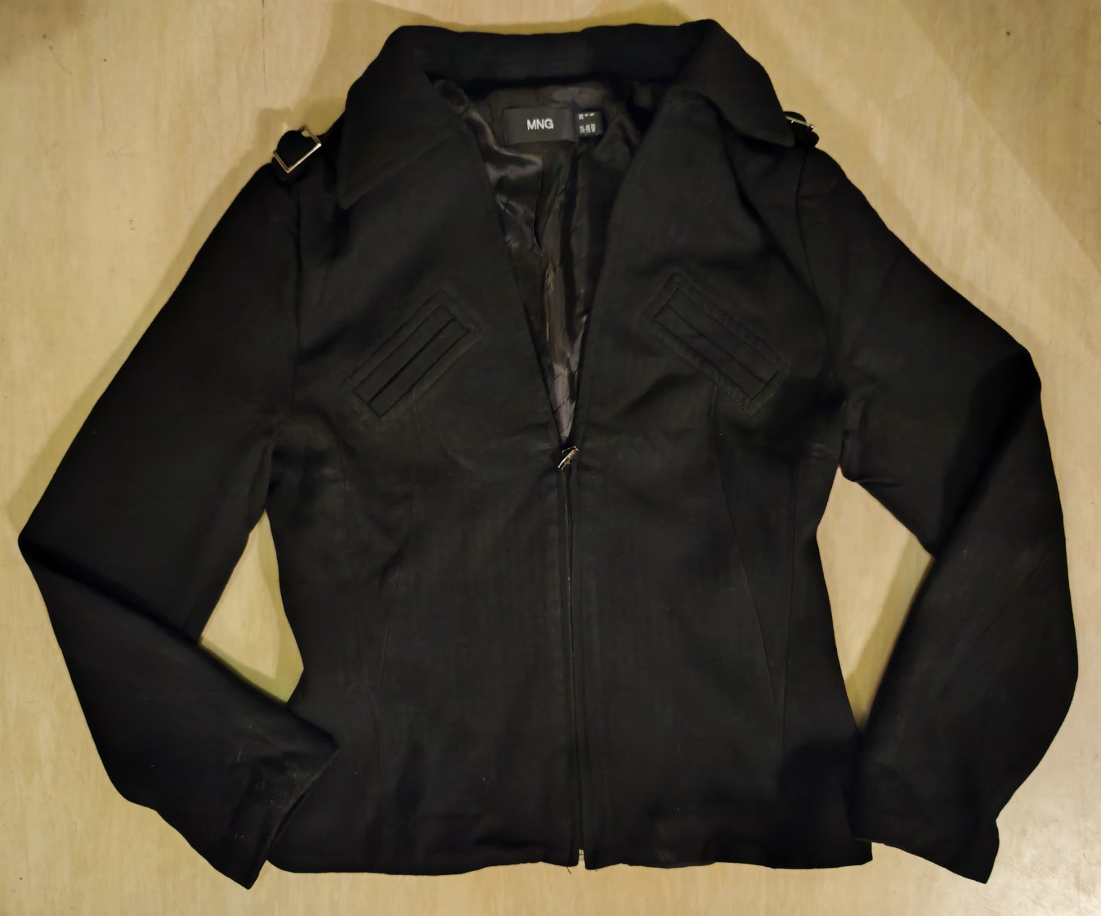 Prodám sako MNG, uvedená velikost 36, rozměry – délka od ramen 52, 5 cm; šířka v podpaží 43 cm; délka samotného rukávu 59 cm; délka rukávu od krku 70 cm. Materiál 60% viskóza, 40% vlna; podšívka 60% viskóza, 40% polyester. Cena 350 Kč, v Brně možné osobní předání.