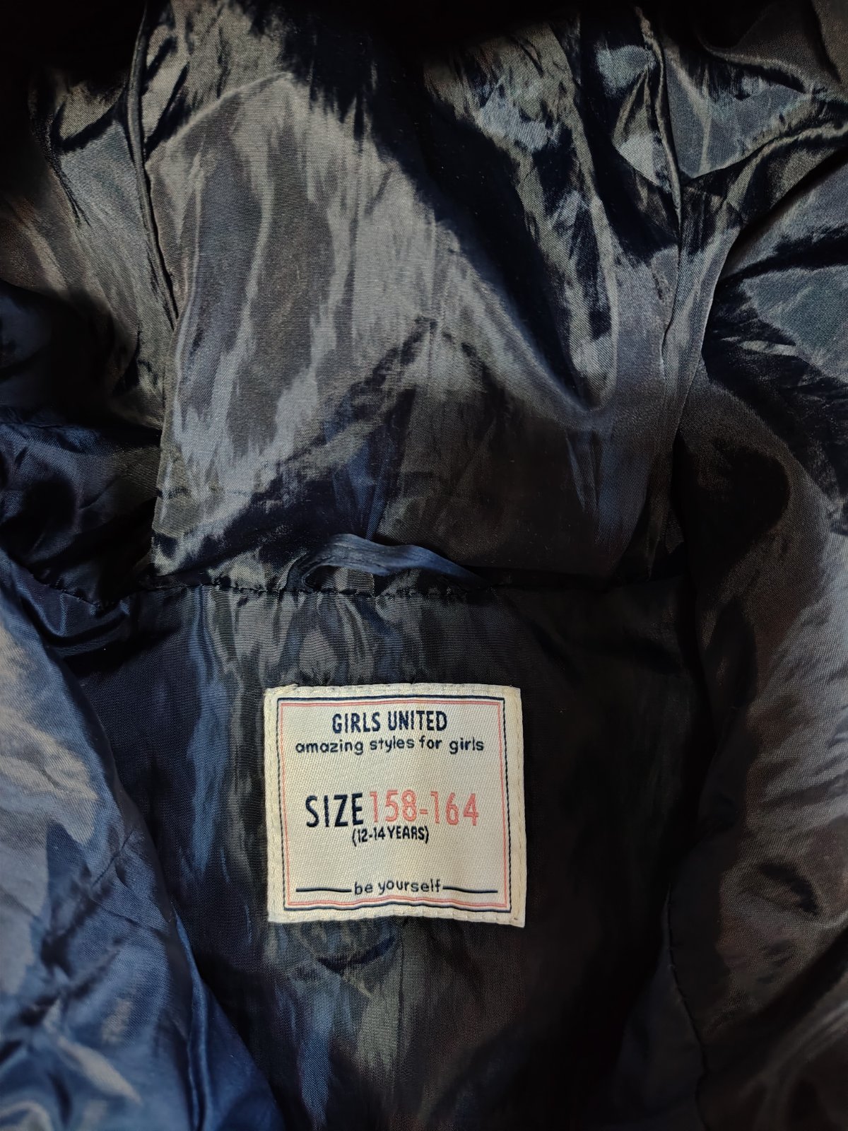 Nošená, bez vad. Navrchu kožíšek, uvnitř slabá podšívka. Dcera nosila s velikostí 158/164. Délka 59 cm, šířka 42 cm
