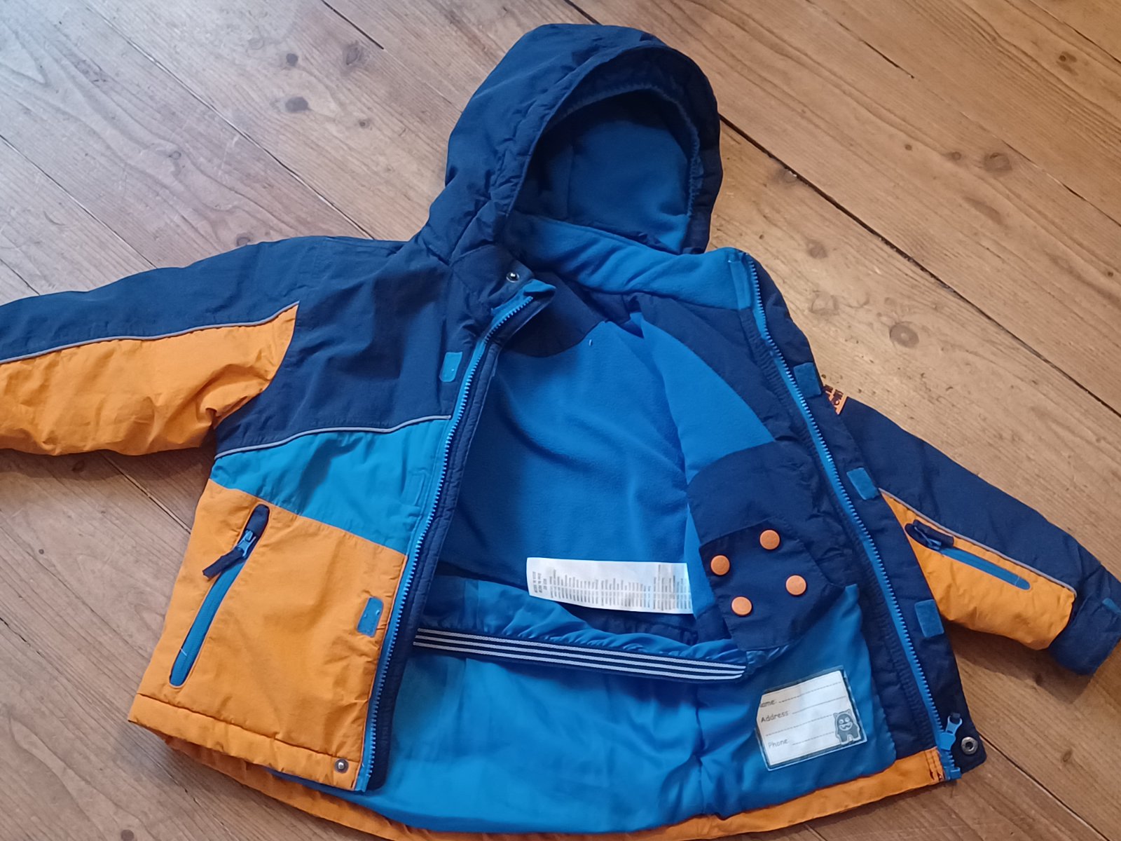 Lyžařská zimni bunda, vel.116, zn. Kiki & Koko, se sněhovým pásem, protisněhovým manžetám v rukávech, výrazné barvy pro větší bezpečnost. Nošená, zipy v pořádku, nikde se nepáře, bez vad. Pro kluka i holku.