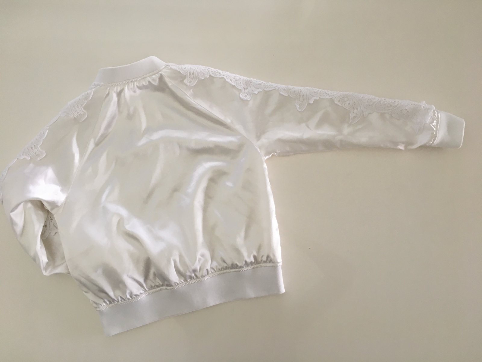 Délka 48 cm, šířka 43 cm, rukáv 58 cm (měřen od krku po celé délce krajce).