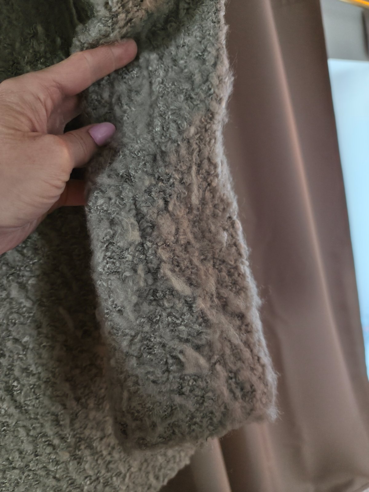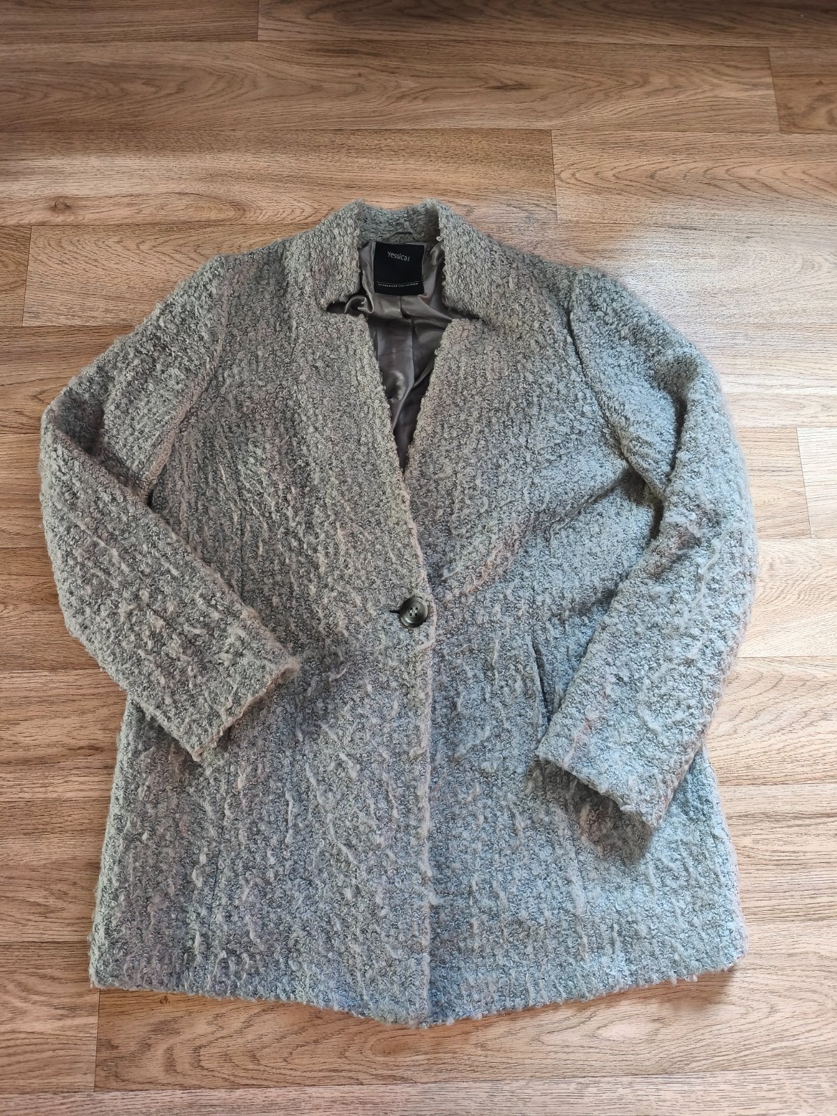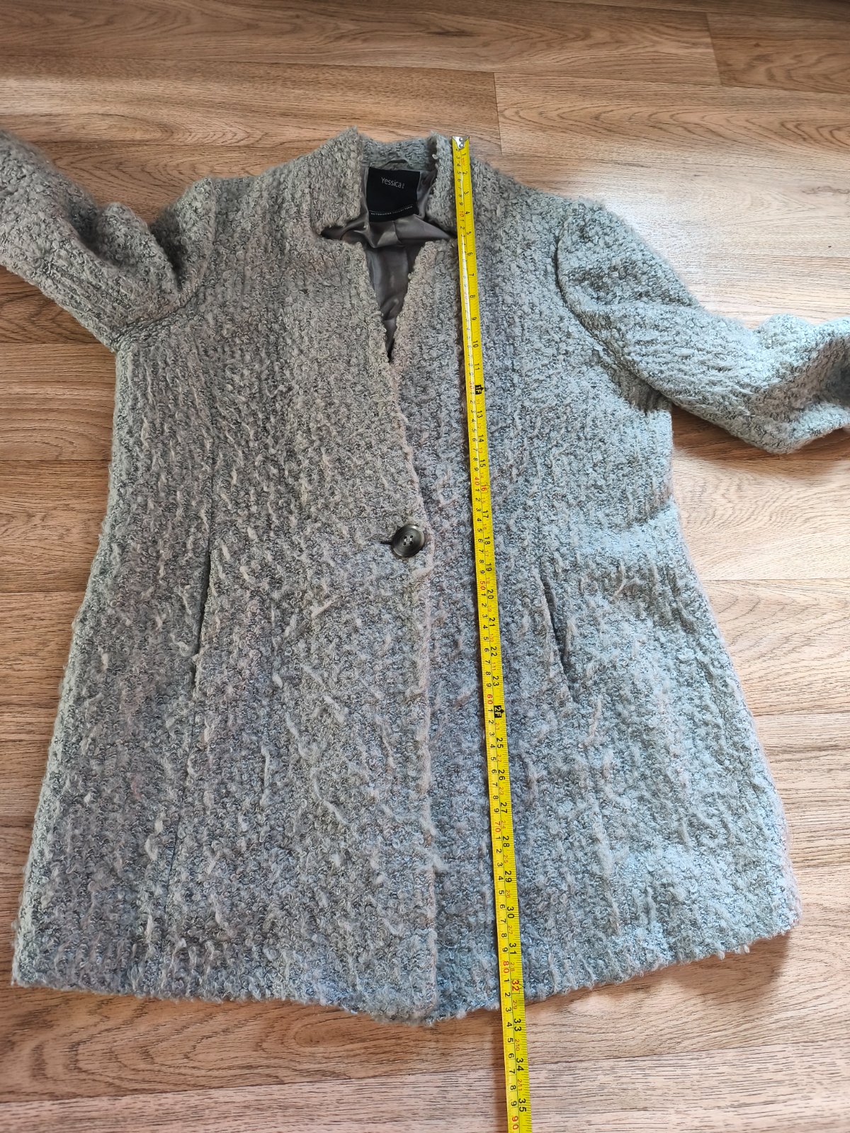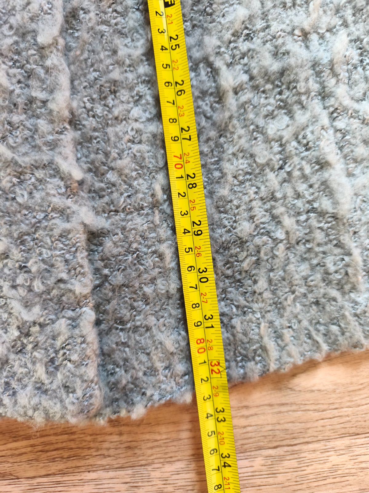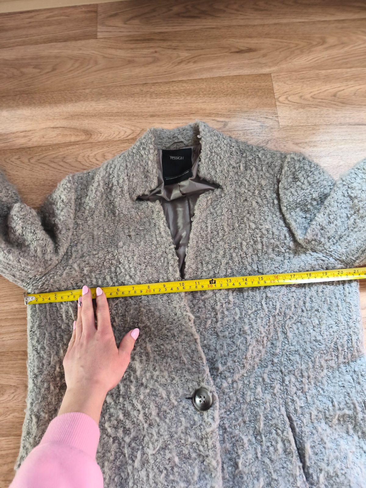 Přechodový kabátek, nemá žmolky, je to teddy materiál s malou příměsí vlny. Nošen při L/XL. Míry viz fotky.