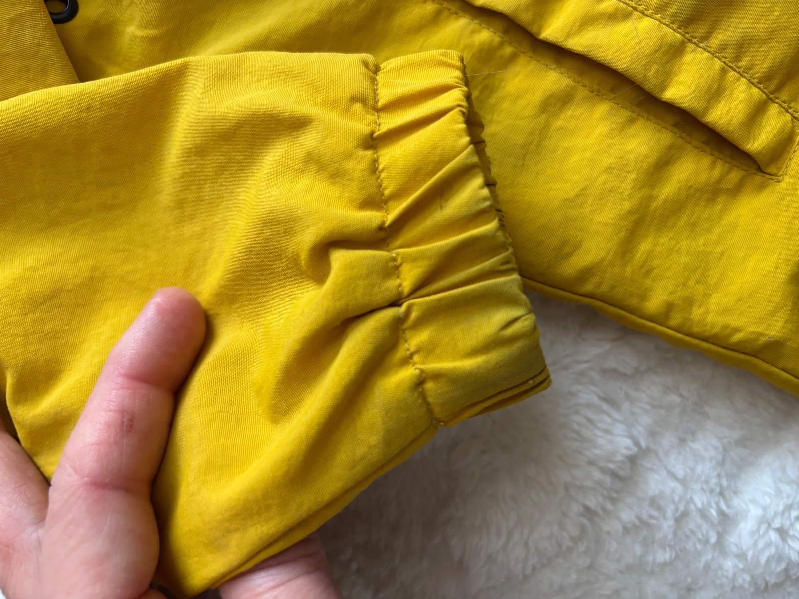 DOBRÝ STAV - žmolíky na lemech, spíš na donošení, na doma, výrznější žmolík....u takovéto stavu oblečeni je vždy zohlednění v ceně .