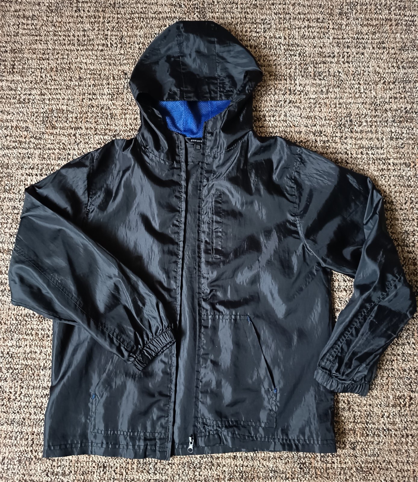 tenká šusťáková bunda bez podšívky, ta je pouze modrá síťovaná v kapuci, velikost uvedena 12 - 13 let - osobní předání Studénka nebo po platbě převodem zašlu poštou nebo do balíkovny