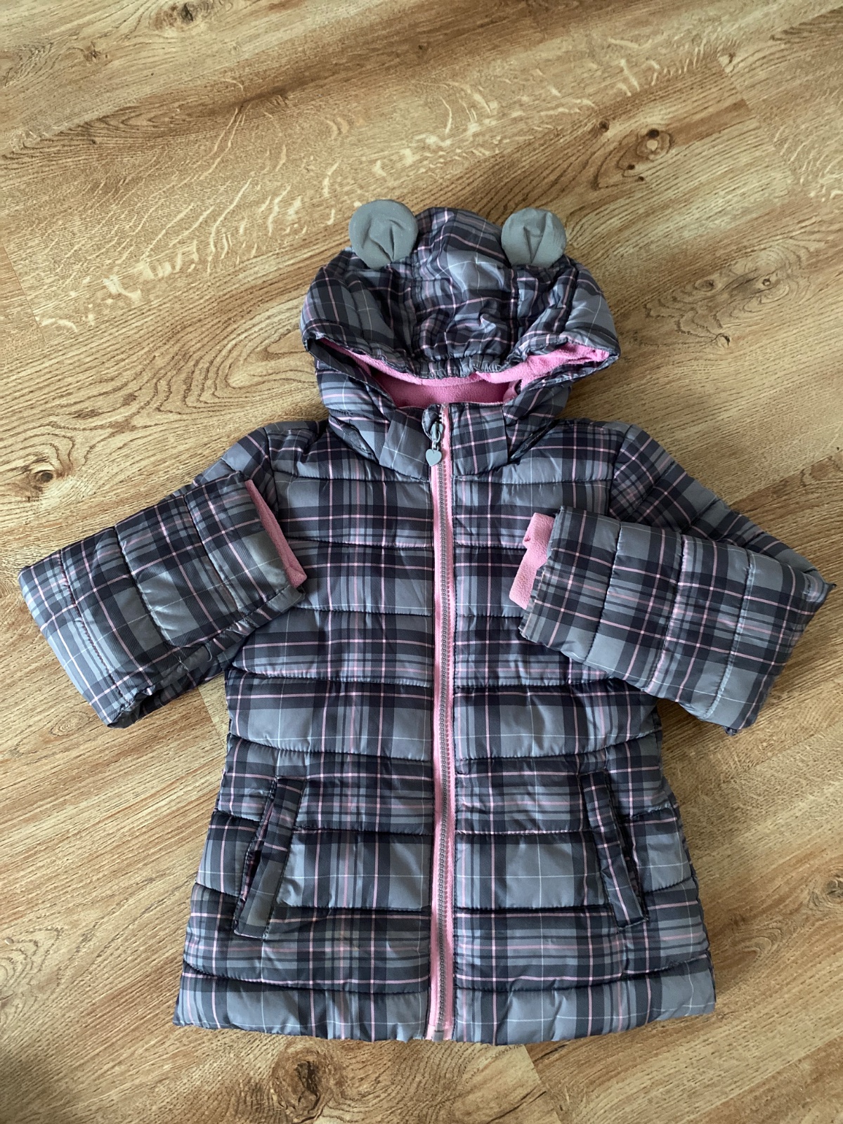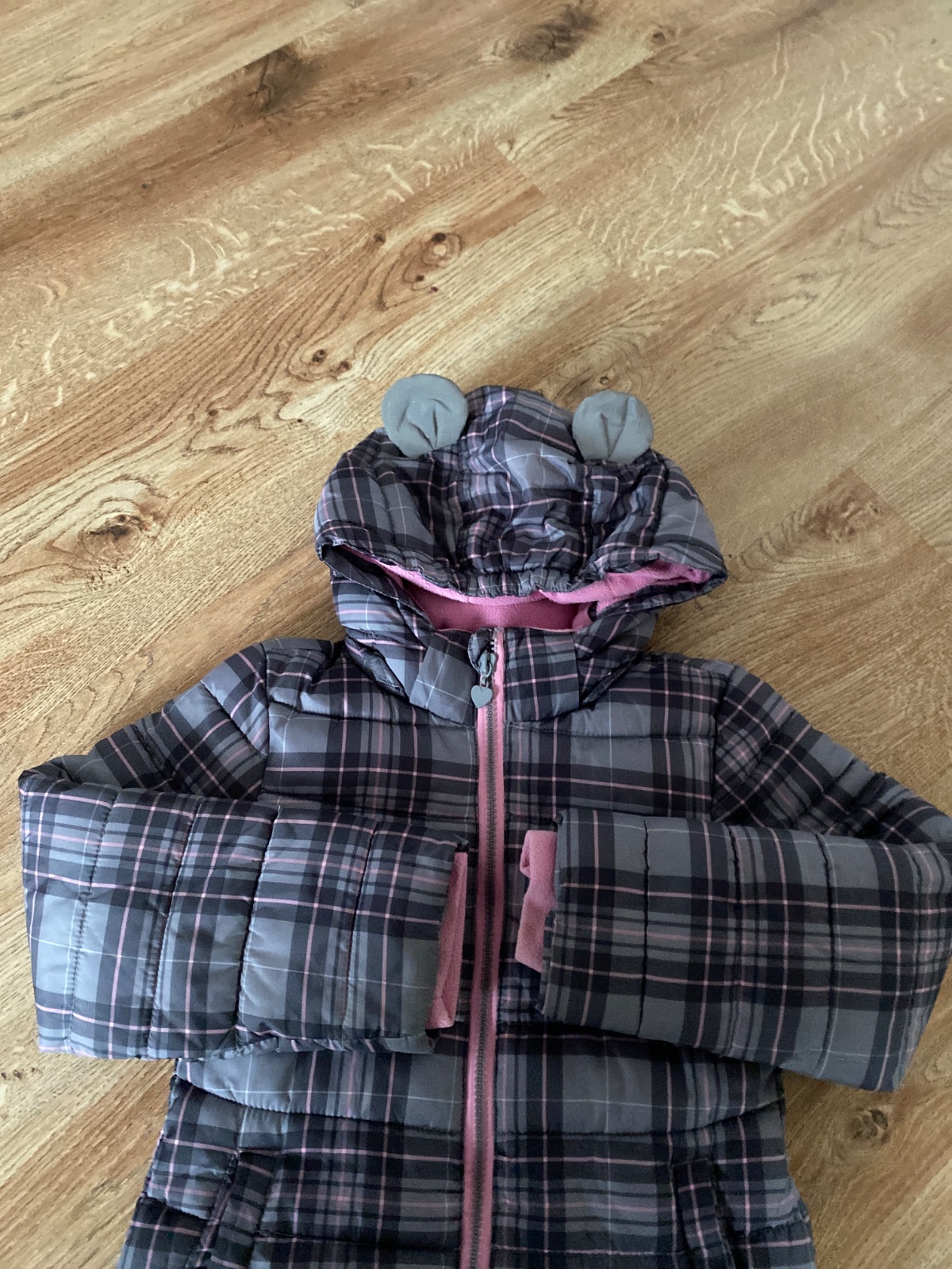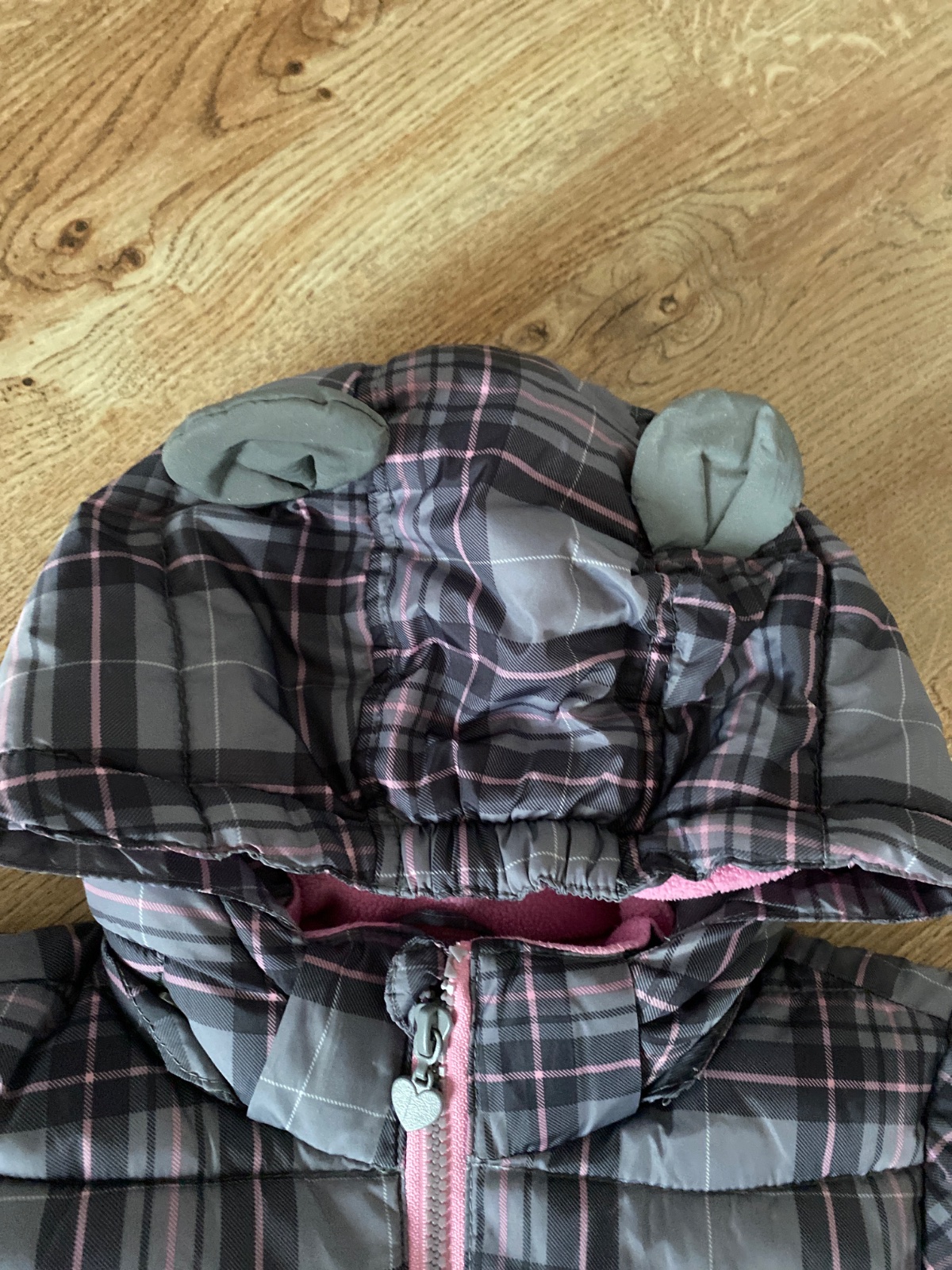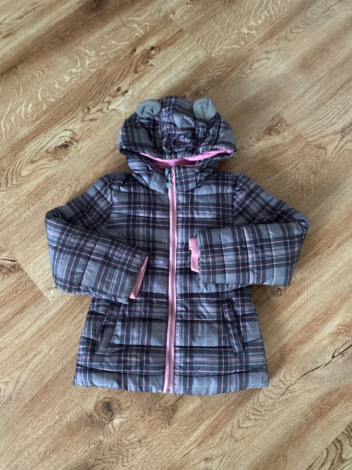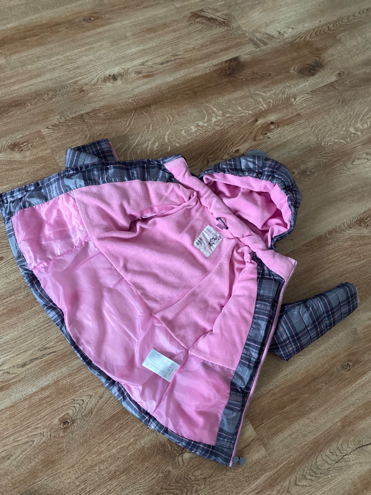 Nošená, stále pěkná, trochu žmolek na úpletu u spodního okraje, je vel. 7-8 let, ale nošena dříve. Již bez kapucky. Zapínání na zip a druky, kapsičky, vrch šusťák, vyteplená, podšitá polyester. Bar...