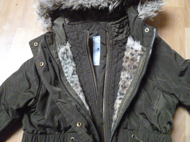 nošený, pěkný, vady nevidim, délka je 60 cm, rukáv od krku je 58 cm, průramky 2x45 cm, kožich nejde odepnout, psaná vel. 7-8 zn.TU