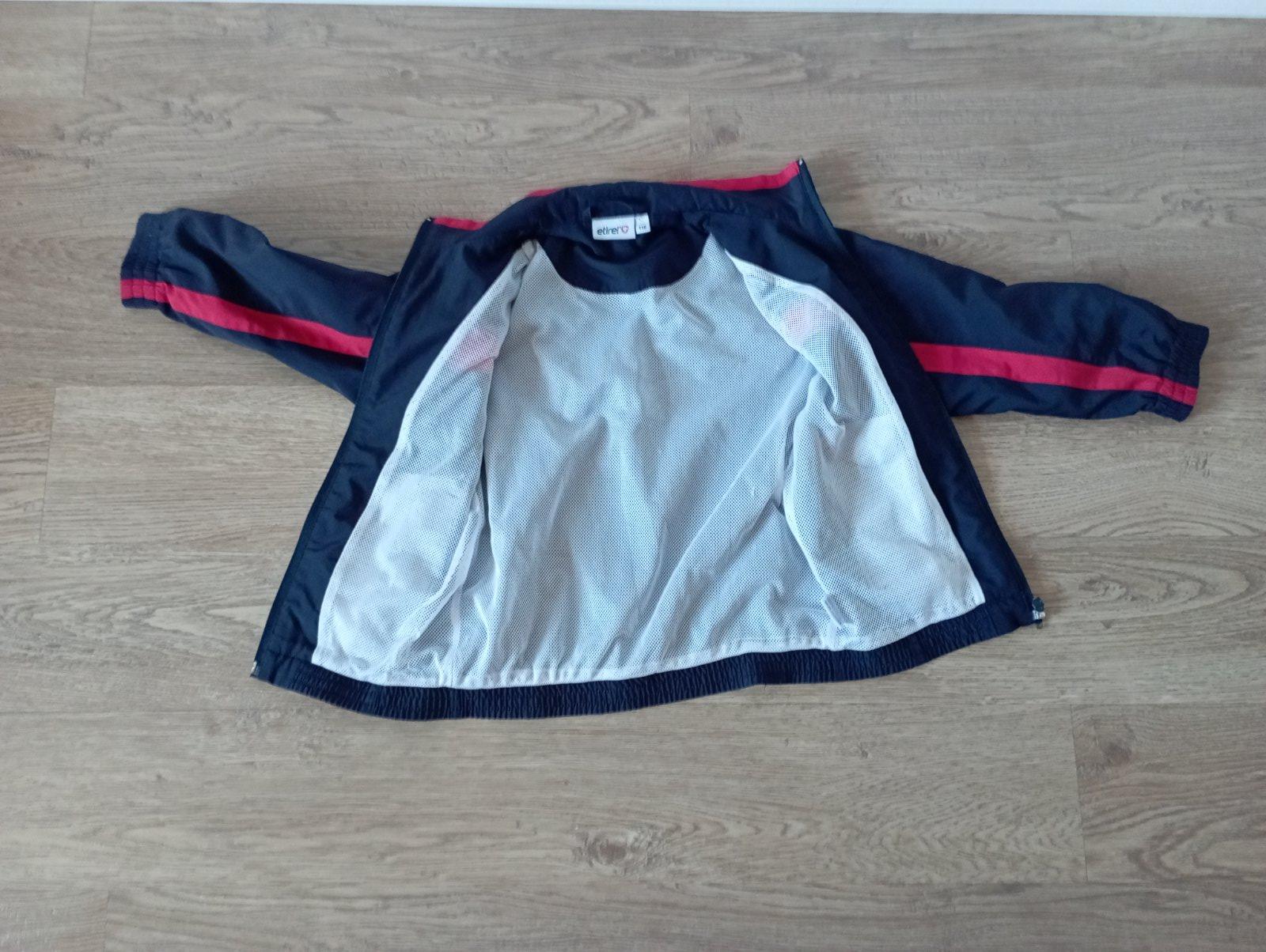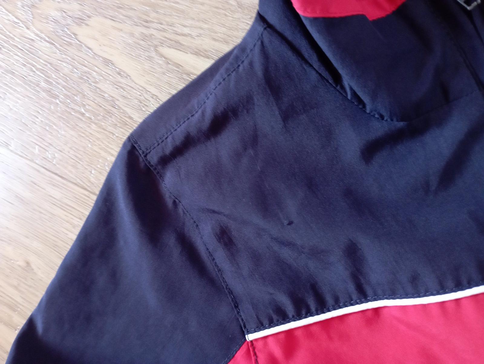 Lehká větrovka bez kapuce se síťovanou podšívkou, v rukávech je podšívka hladká. Na pravé části 1 zátržena nitka, jinak bez vad- viz foto. Rozměry - celková délka 48,5cm, délka rukávu od krku 49cm.