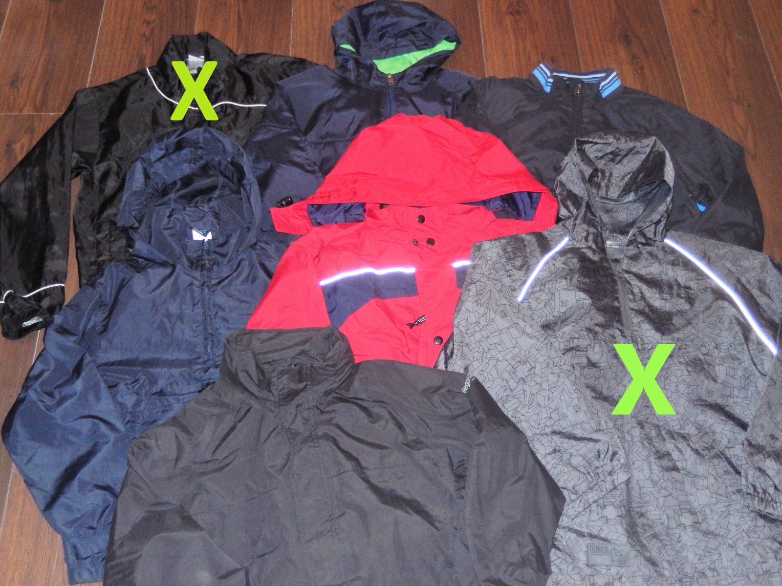 1) modrá větrovka - kapuci lze srolovat do límce, 99kč
