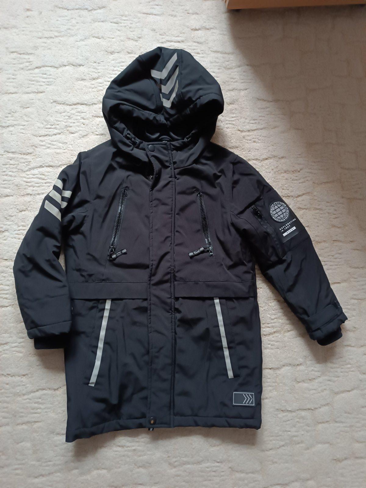 Zimní delší černá bunda, vel. 128
