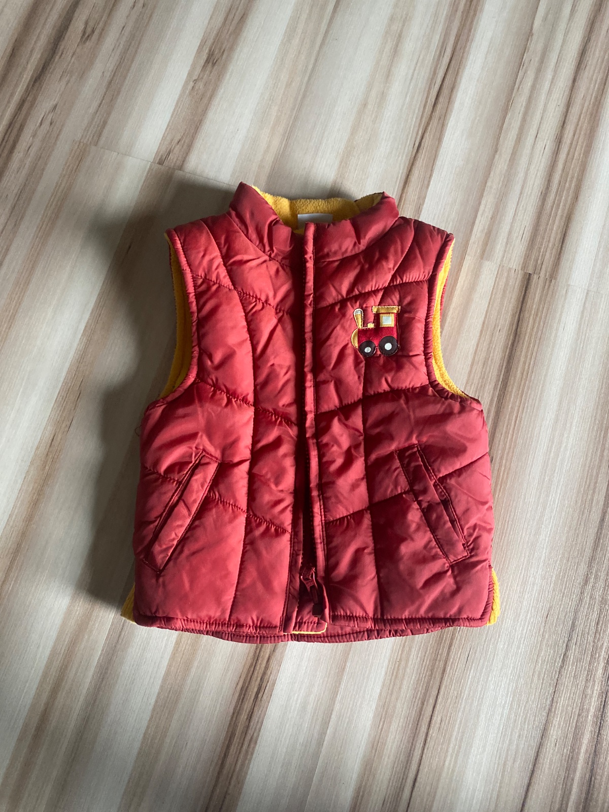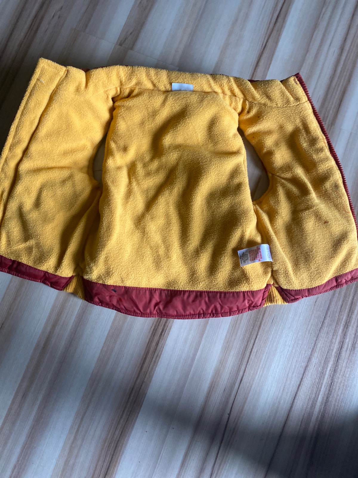 Minimální známky nošení (prala jsem ji) Oboustranná, z jedné strany flís, druhá něco jako šusťák CD: 28-30cm (zadní díl je delší), šířka pod průramky: 2x30cm.