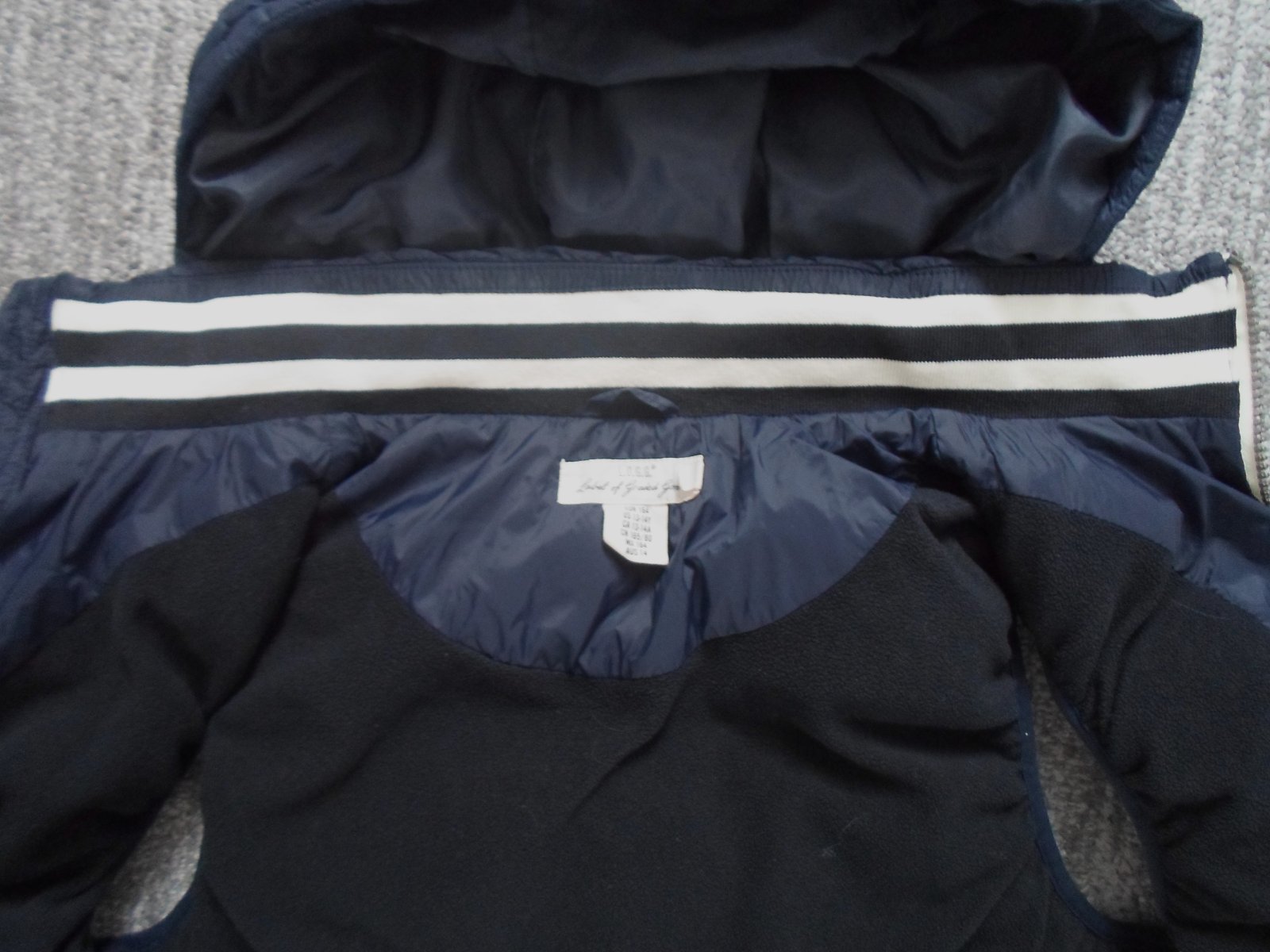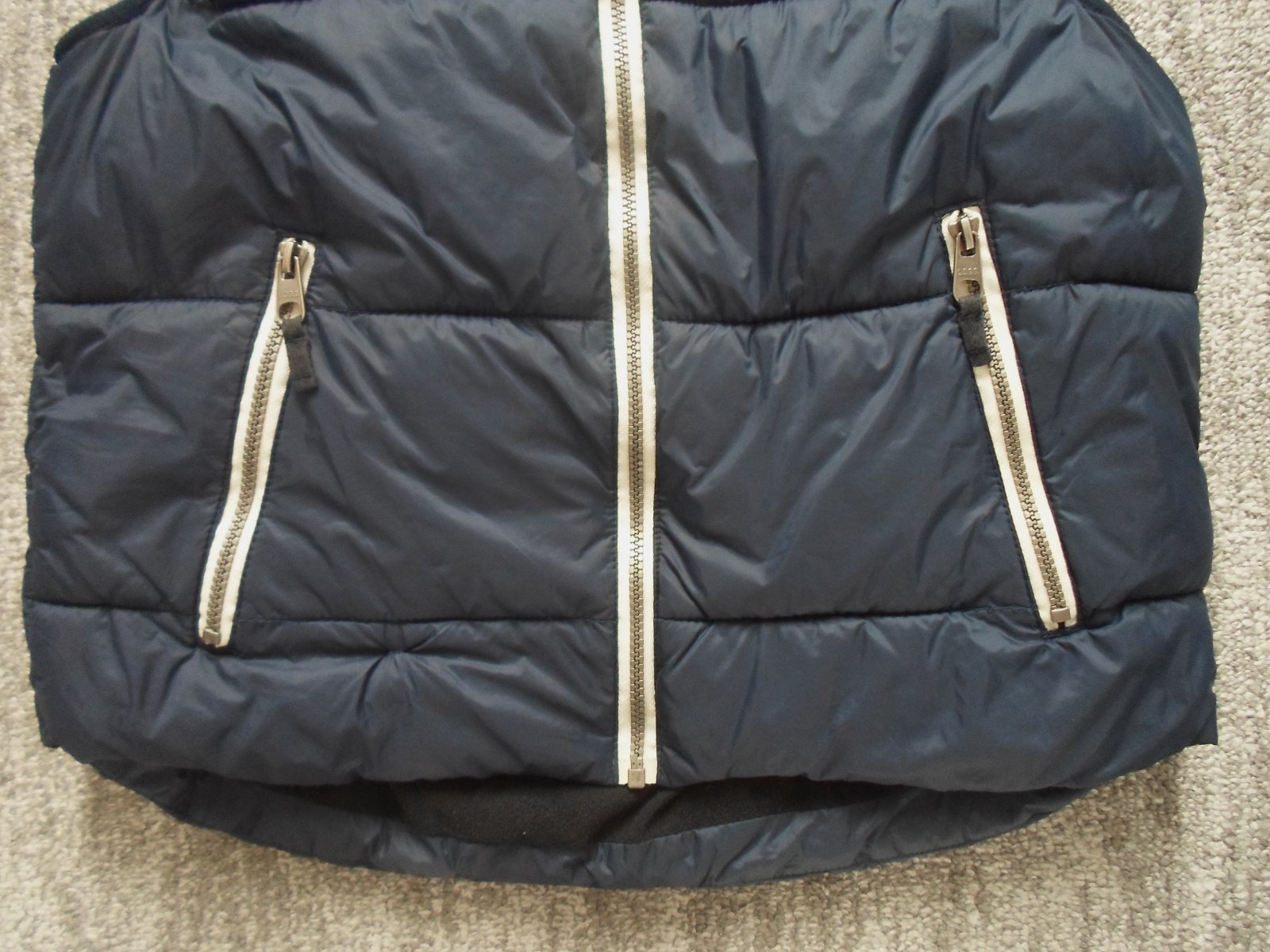 Ve skvělém stavu dole vepředu zašitá malá dírka viz foto. Při nošení vůbec nejde vidět je taková nařasená tak se to ztrácí. Jinak je jako nová Vel. 13-14, 164, ale je o dost menší.