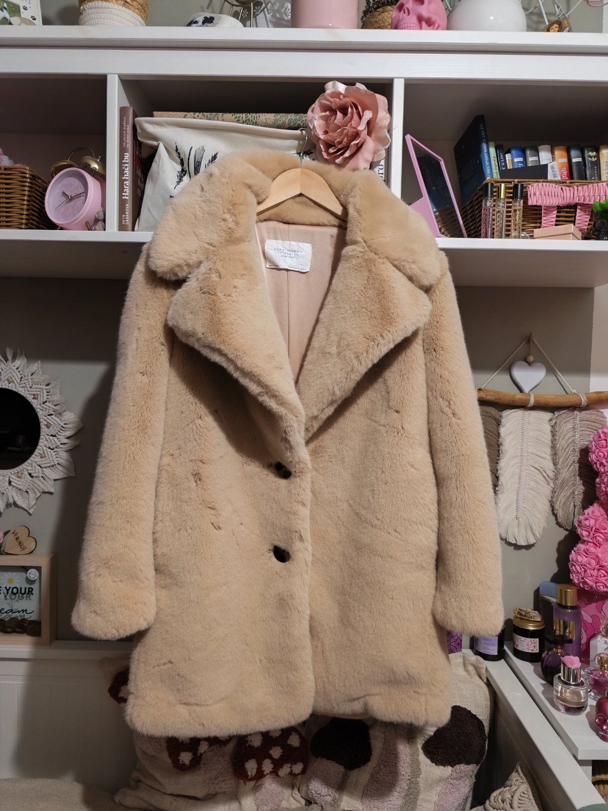 Luxusní huňatý a extra hebký kožich Zara XS, 2 velké knoflíky, zašitá podšívka a mini zašpinění s menšími zatrhlinkami viz foto, zohledňuji v ceně, zvenku bez vady, absolutně jemný a nadýchaný. Barva tělová - pudrová - čili meruňkovo - růžová...