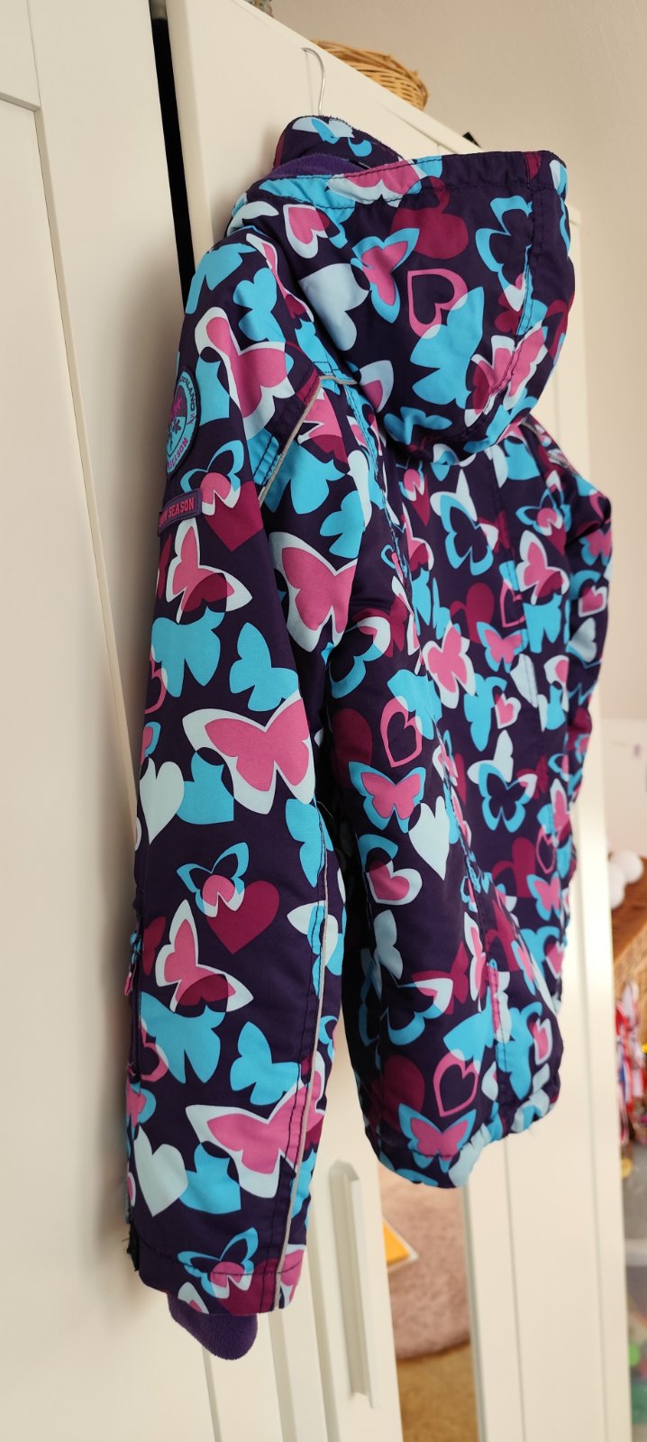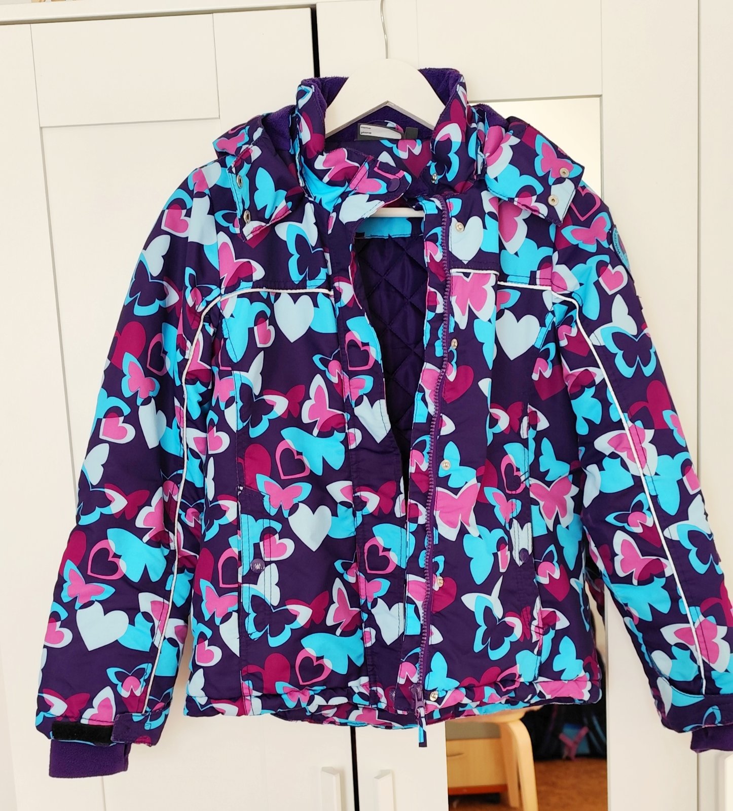 Kupovaná nová, minimálně nošená, stále výborný stav, jako nová. Z bílo-modré strany má bundička na rukávu kapsičku na skipas. Délka 60 cm, šířka 45 cm, rukáv od krku 70 cm.
