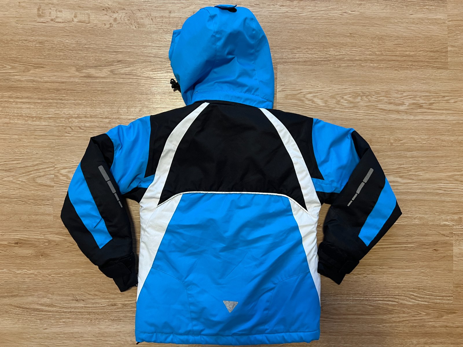 Prodám nošenou bundu v dobrém stavu – žmolky, odření reflexního proužku. Zapínání na zip, suchý zip, odepínatelná kapuce, náprsní kapsa / vnitřní kapsa, reflexní prvky. Délka zadního dílu 55 cm, šíře bundy 41 cm , délka rukávu od náramenice 47 cm (bez úpletu)