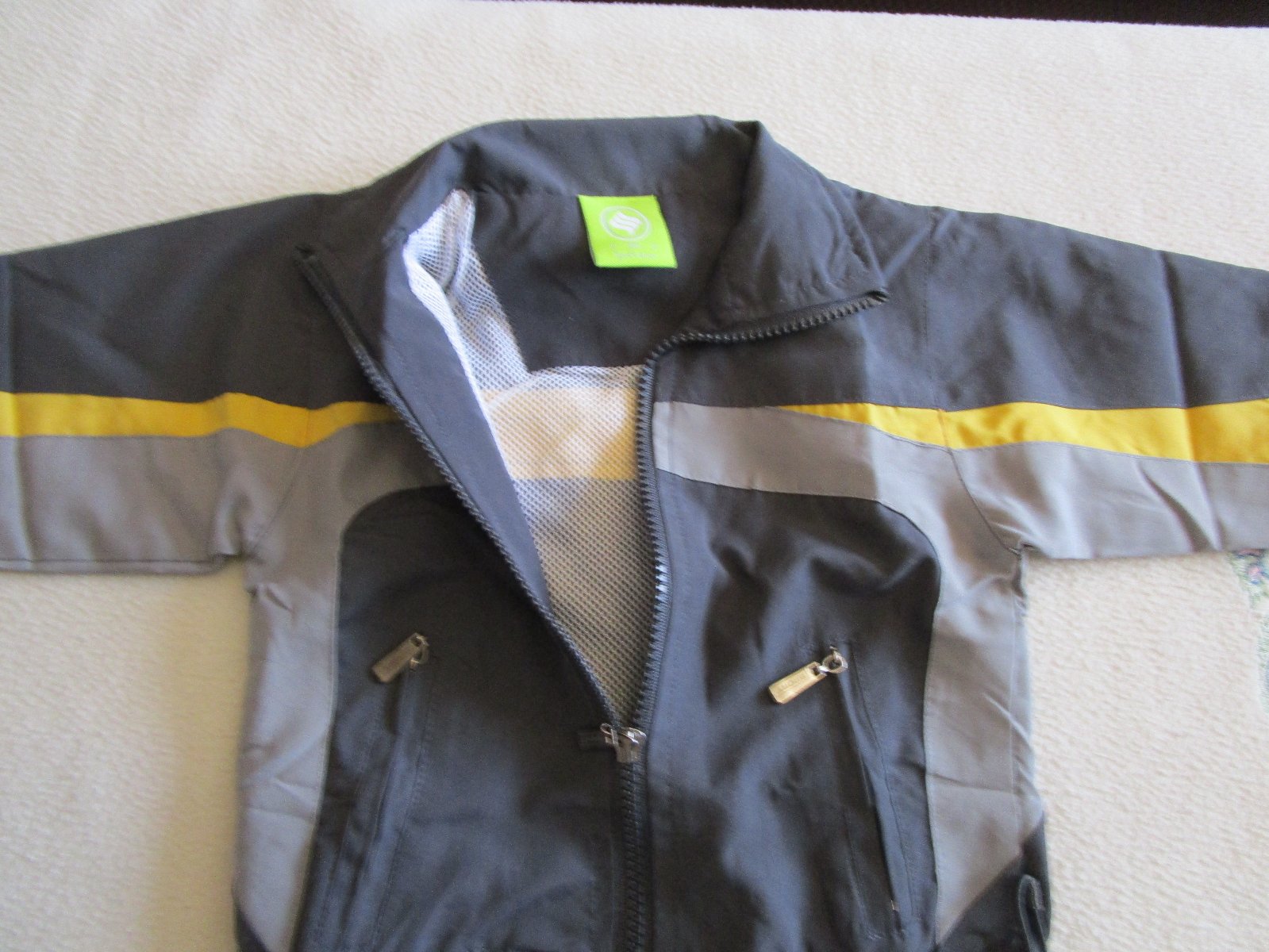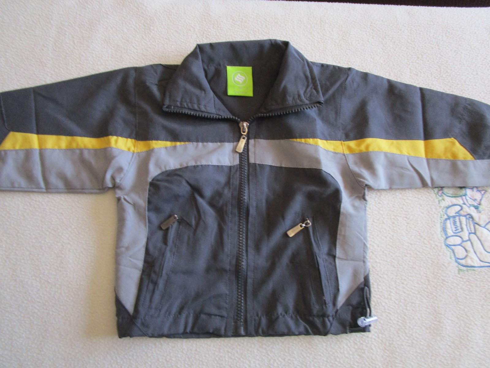 Nová šedá jarní bunda, síťovaná podšívka, zapínání na zip, kapsy na zip, vel. 92, cena jen 49 Kč.