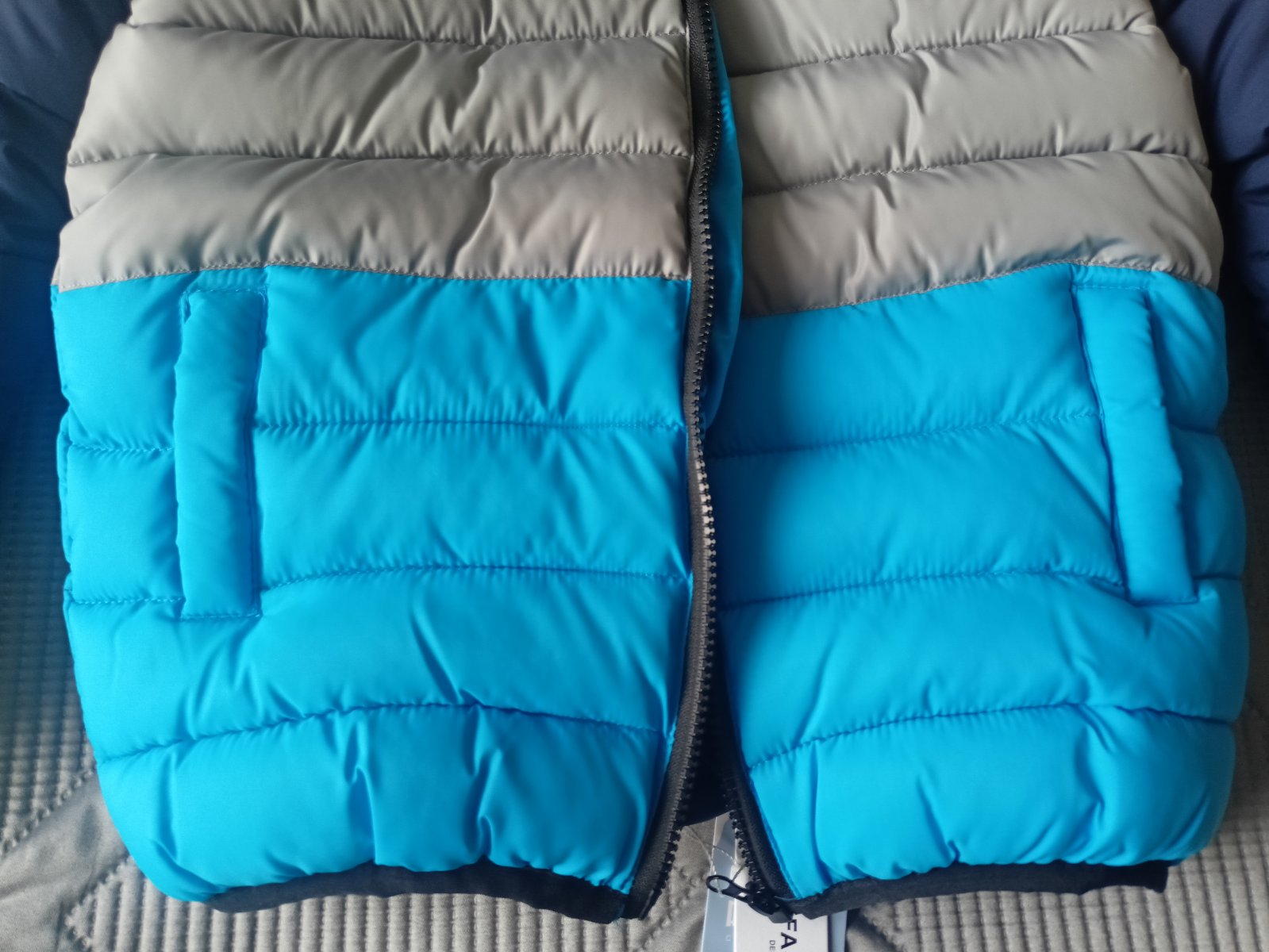 Vyrobeno z teplého a pohodlného nepromokavého materiálu, uvnitř je hřejivá výplň 100% Ultra Cotton (Duté vlákno). Bunda je prošívaná, má pěkný naducaný vzhled, rukávy a spodní lem jsou na gumu. Podšívka polyester pro snadné oblékání a svlékání. Bunda se zapínáním na zip, má dvě kapsy a kapuce která perfektně zakryje hlavu a krk. Průběžný zip s chráničem brady. Vodě a větru odolná. Bunda je velmi slušivá! Doporučuji.